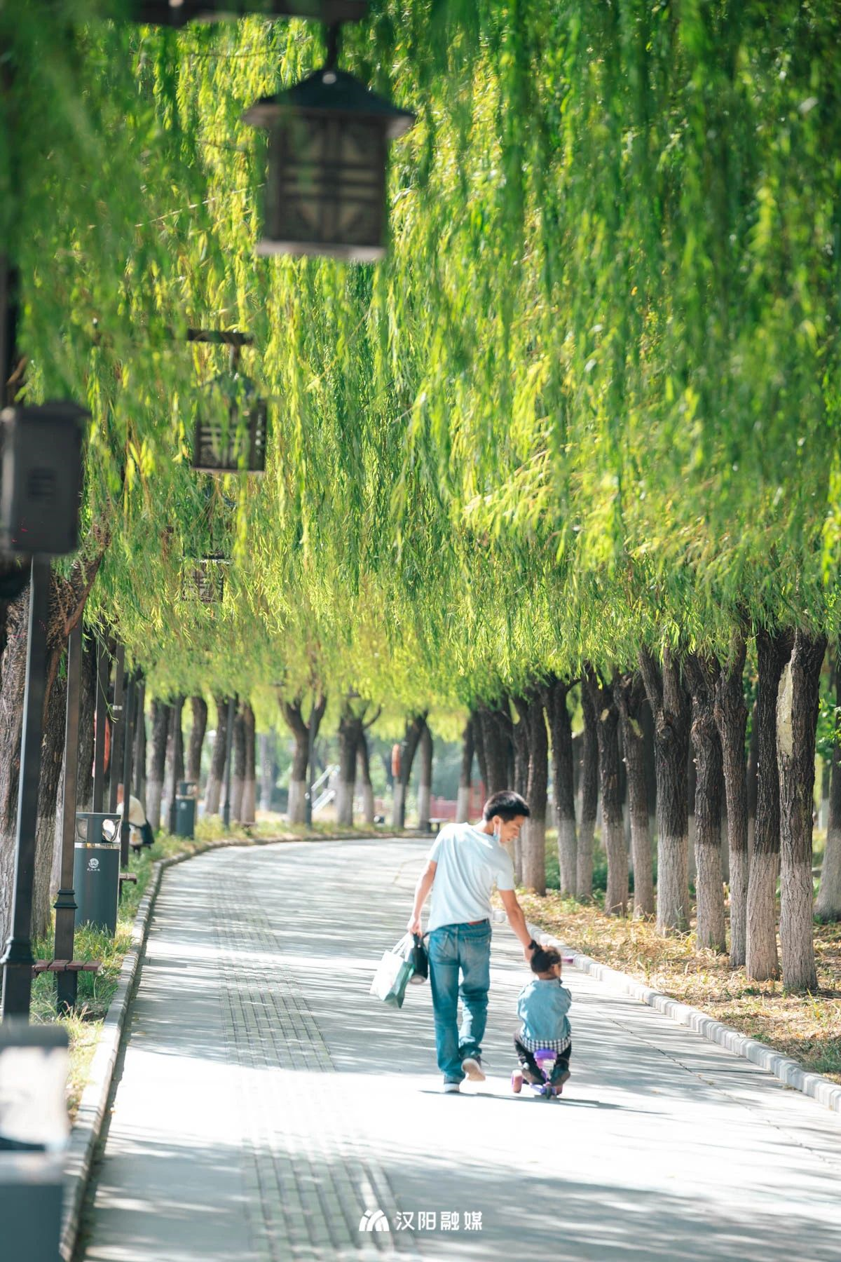 春景如果是幅画,流动的线条中一定要有柳枝。柳树随风起舞,倒映在湖面上,垂在道路边,尽显自然灵动之美。