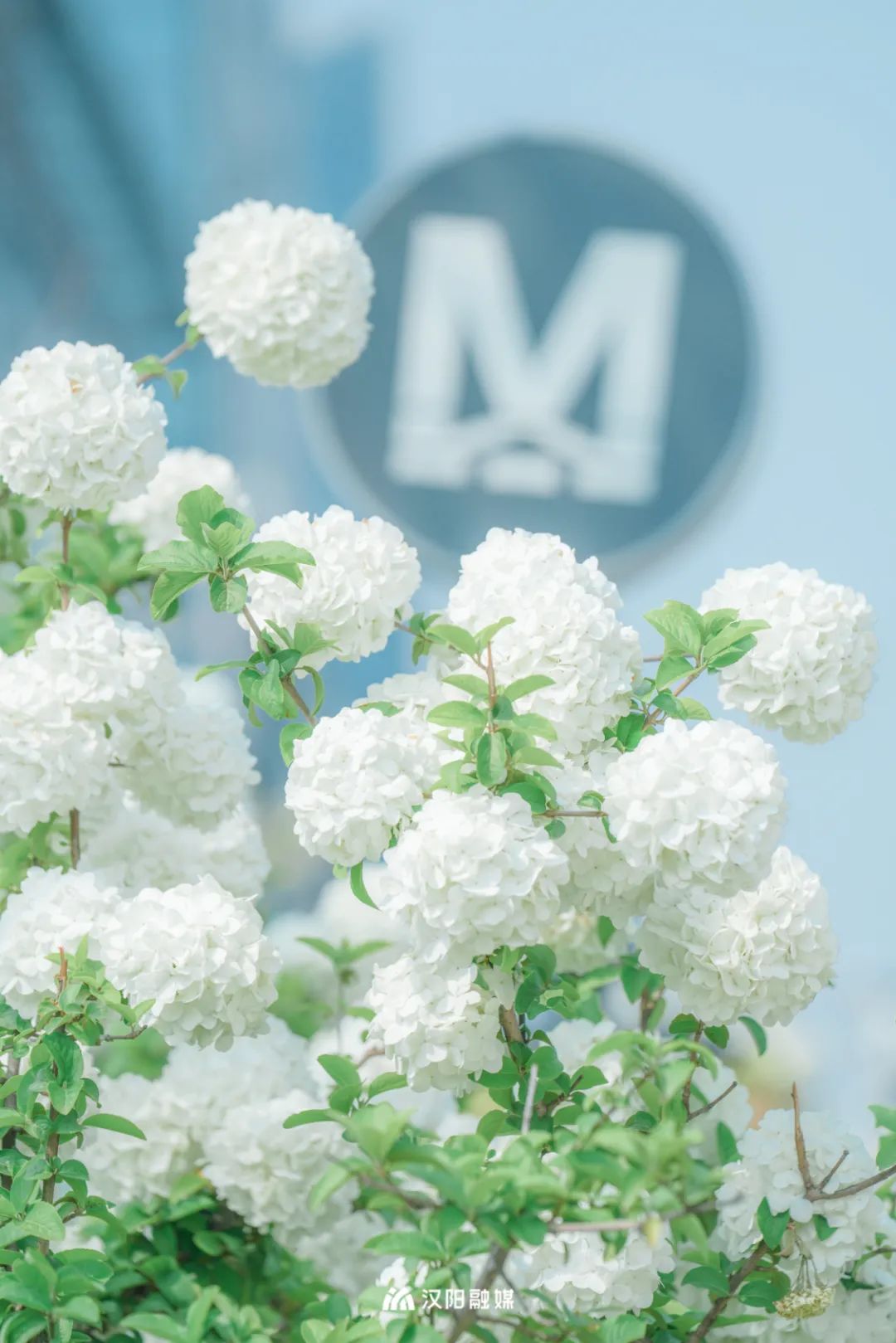 从琴台地铁站c口出来,大约有10棵连成片的木绣球树,圆滚滚,白皑皑,凭实力“出圈”。