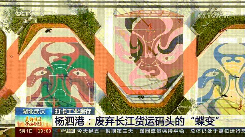 篮球爱好者王鑫华表示,“这边空气比室内篮球场好一些,清新一些。打球打热了还可以吹一下江风。篮球场地面一般都是纯色的,这边脸谱的场地设计,对我们来说还是比较新奇有趣的。”