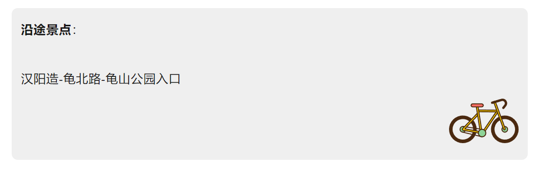 整段路骑行完,时间30分钟左右。如果还意犹未尽,还可以去晴川阁、铁门关,一睹汉阳风光。