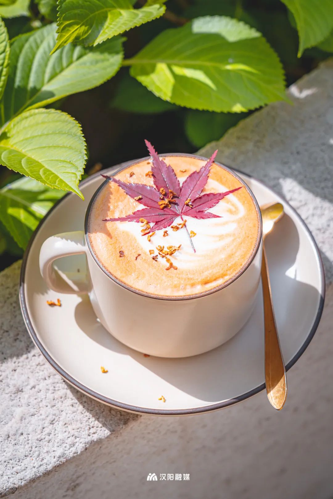点一杯招牌“桂花枫叶拿铁”,红枫叶的点缀很是漂亮,入口丝滑香醇,桂花的香气伴随着每一口咖啡溜进鼻腔,仿佛喝下去一整个秋天。