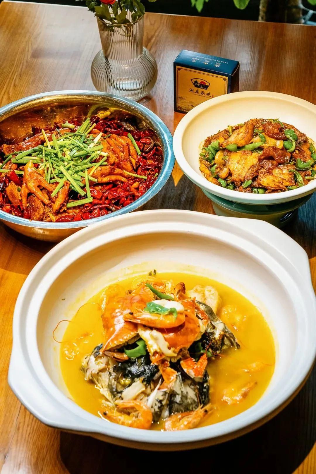 鱼头是当家招牌!一道“海鲜焖鱼头”,集合了海鲜和湖鲜,金灿灿的汤汁格外勾人!鱼头和鱼肉分离,轻轻一夹就能捻起一大块鱼肉,搭配肥美的螃蟹和虾,简直鲜到了家!