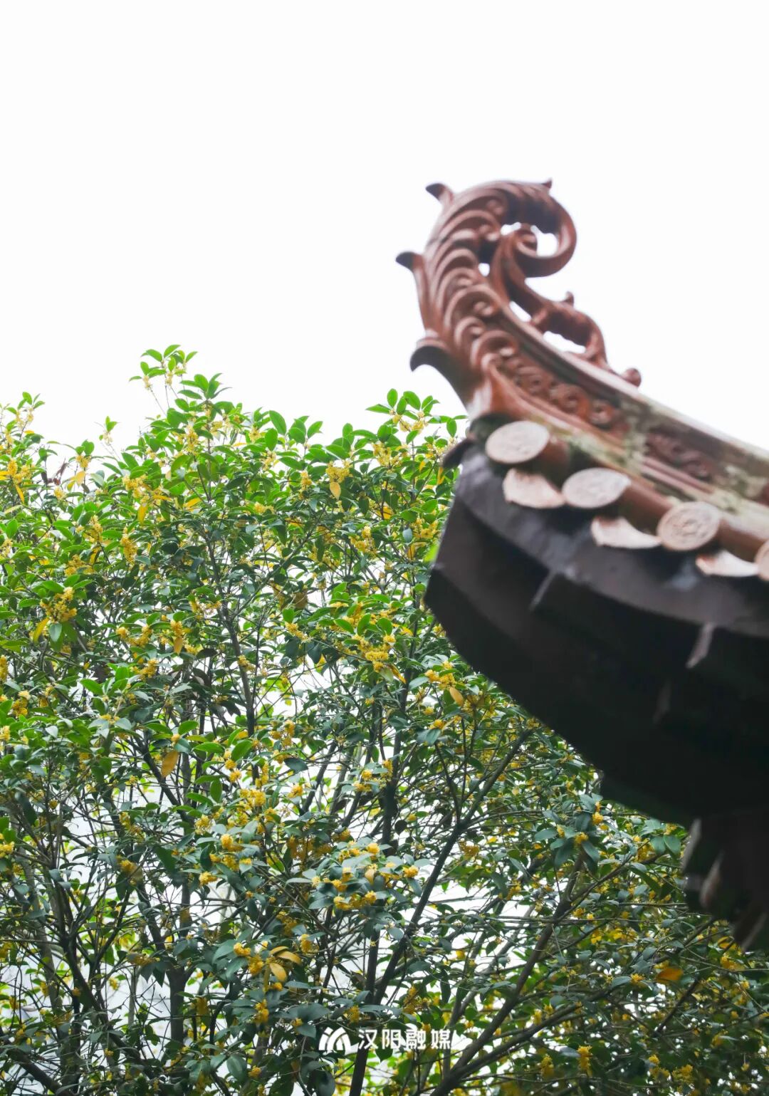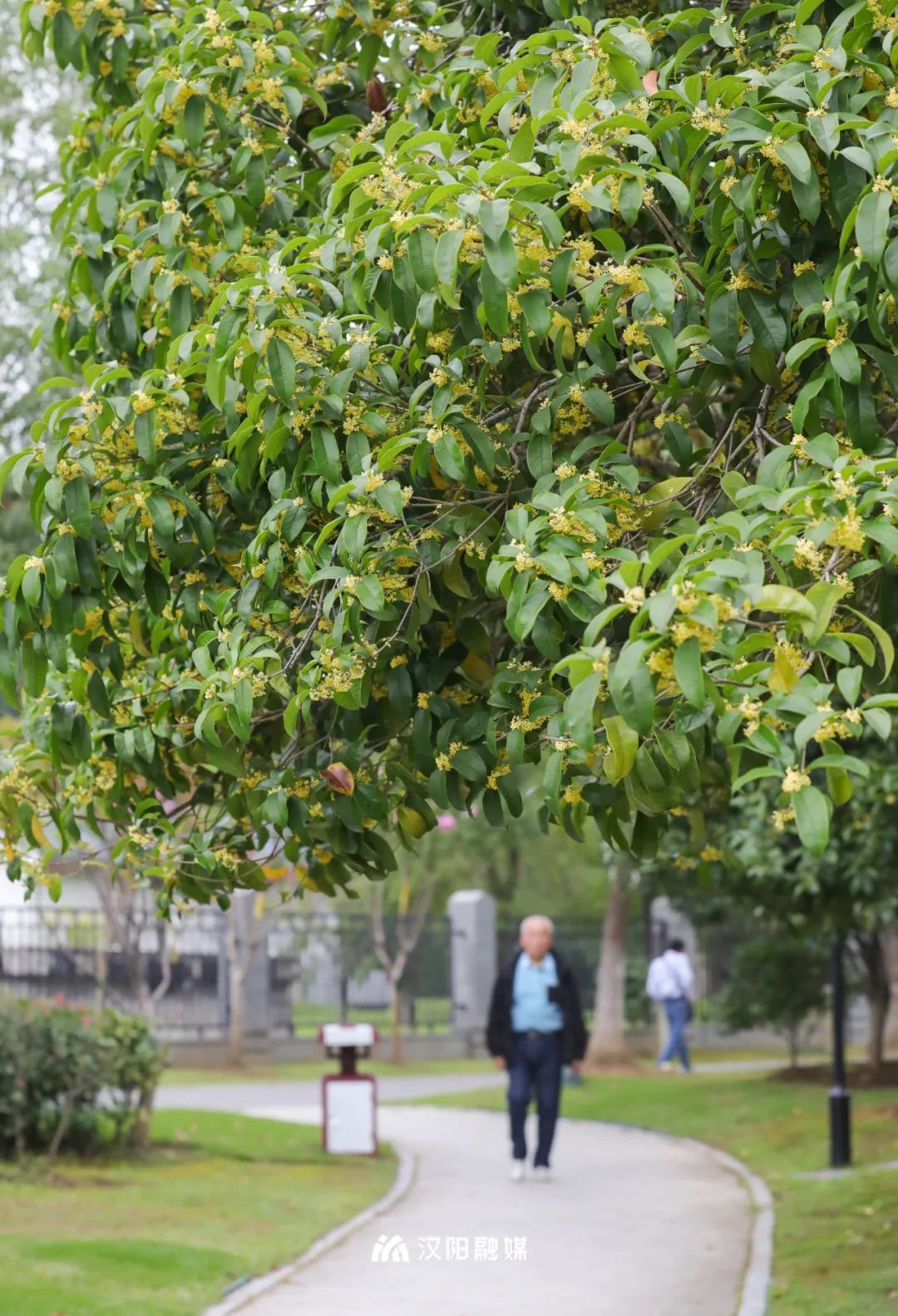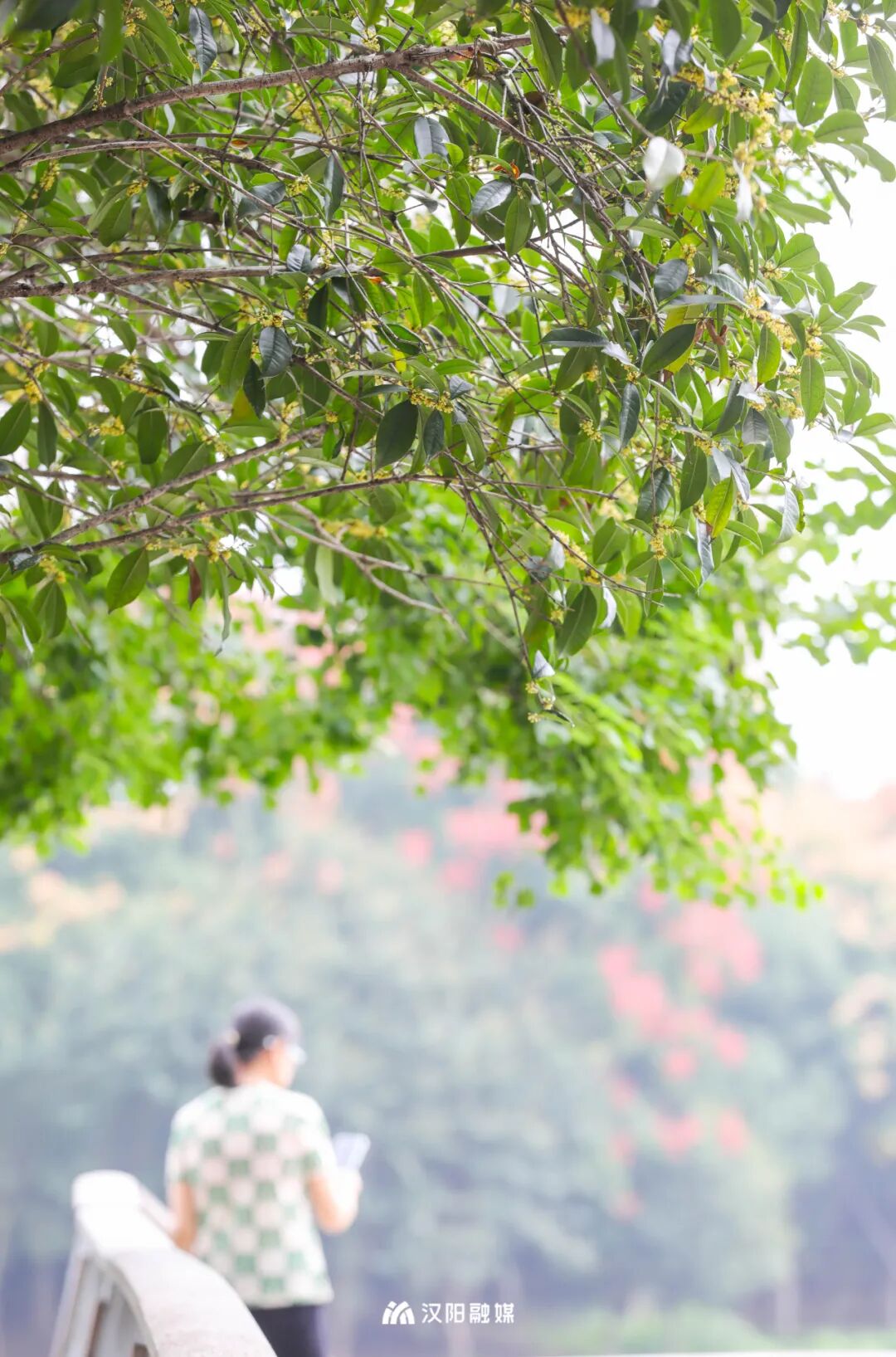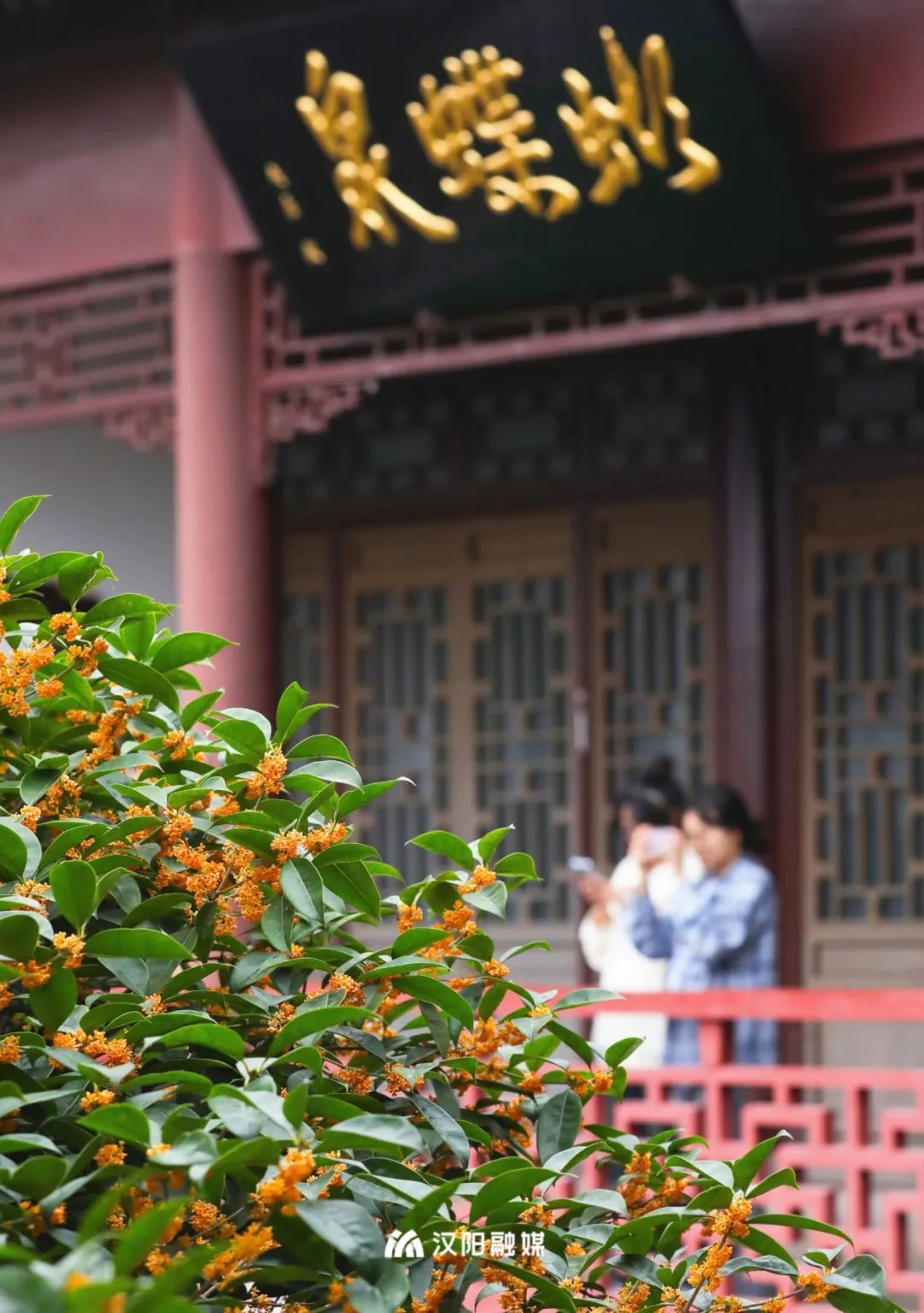 四月赏牡丹,秋日寻桂来。汉阳公园的桂花树有着一定的年头,与绿瓦红墙自成一景,引得往来游客驻足留念。