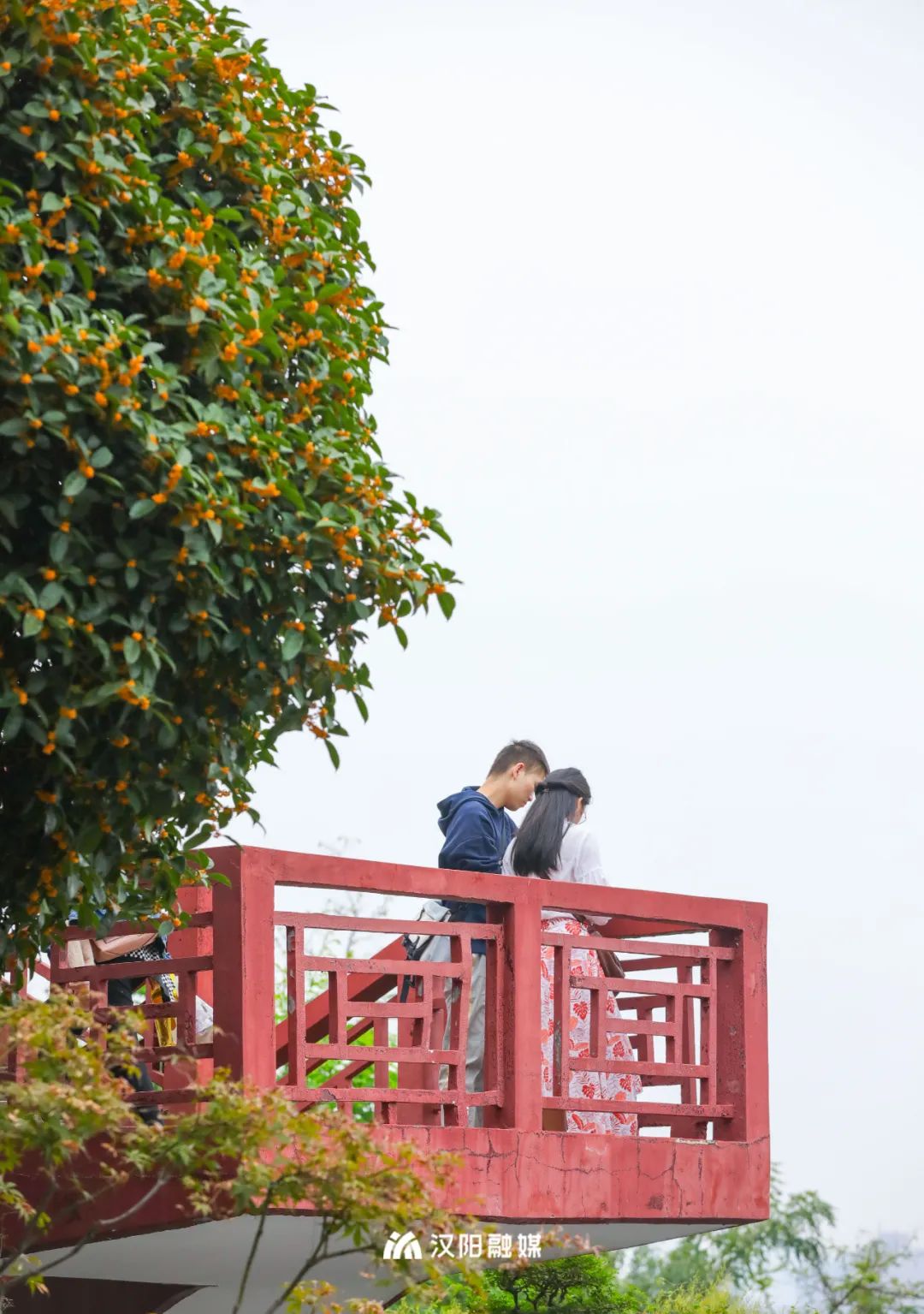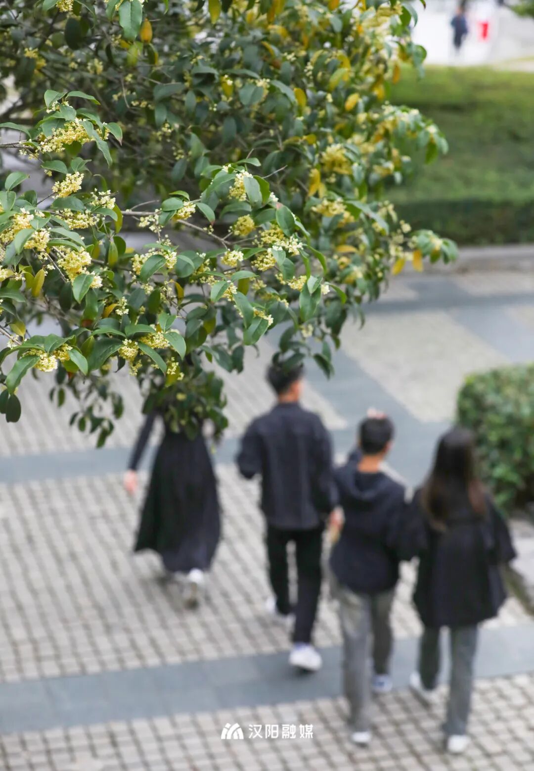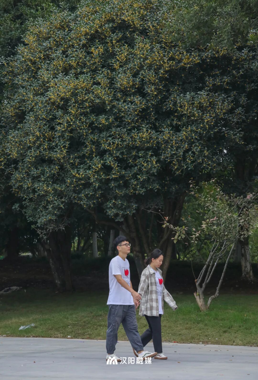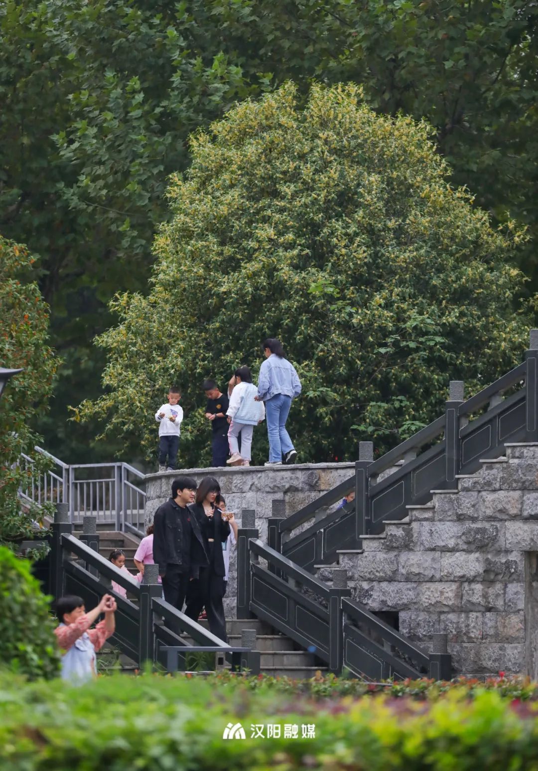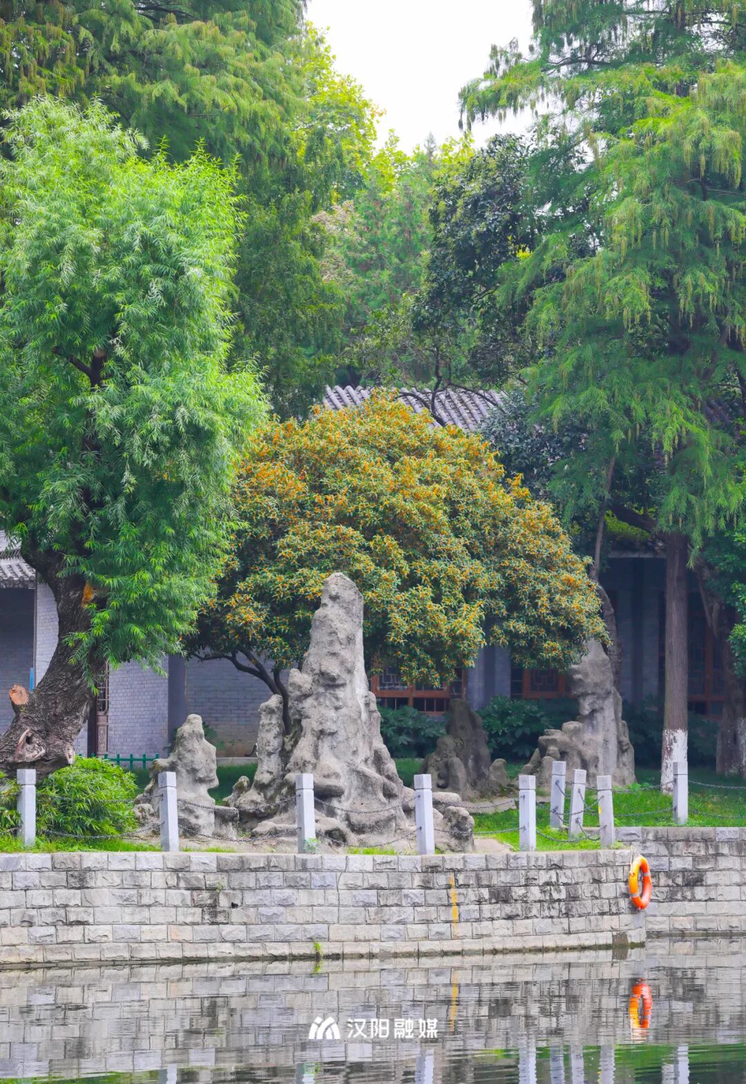 四月赏牡丹,秋日寻桂来。汉阳公园的桂花树有着一定的年头,与绿瓦红墙自成一景,引得往来游客驻足留念。