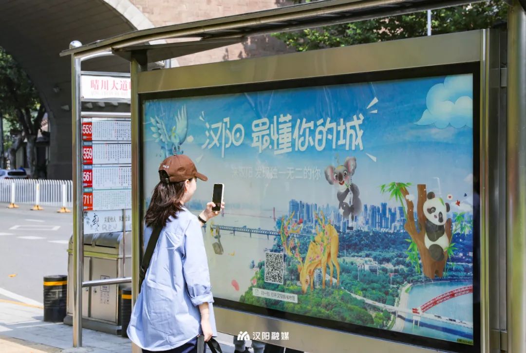 “咔嚓一声,满屏都是你的美。”14块电子大屏、35个公交站点,汉阳全区铺设动物主题的城市创意海报,吸引市民和游客随心拍照打卡。