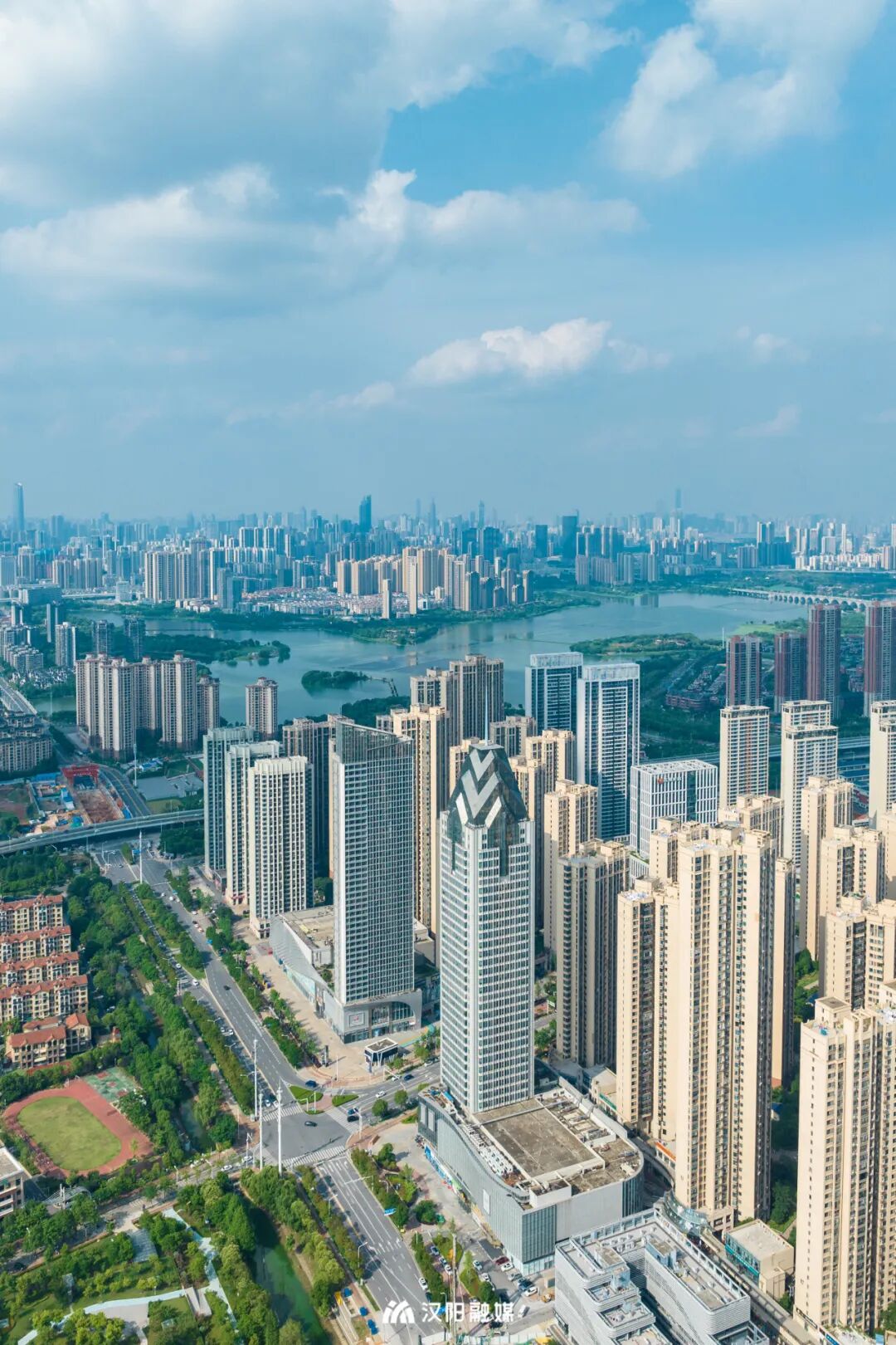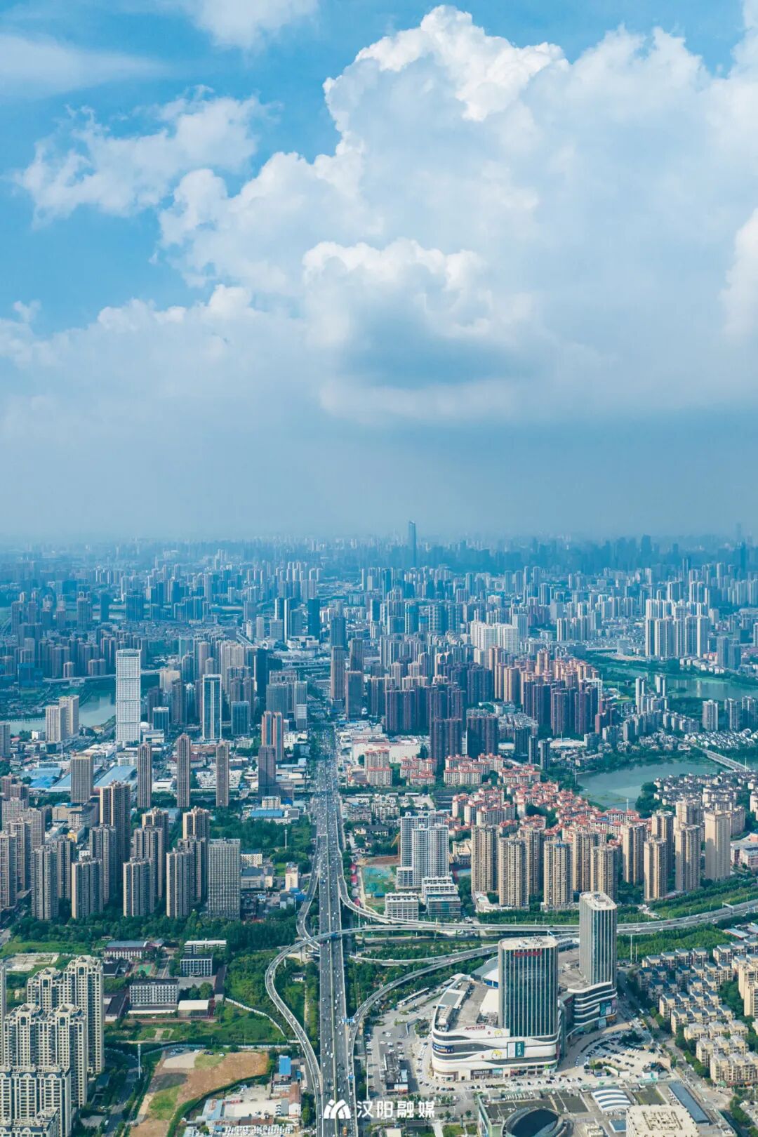 △图为龙阳大道,俯瞰汉阳,城市高楼与绿水青山相宜相融。