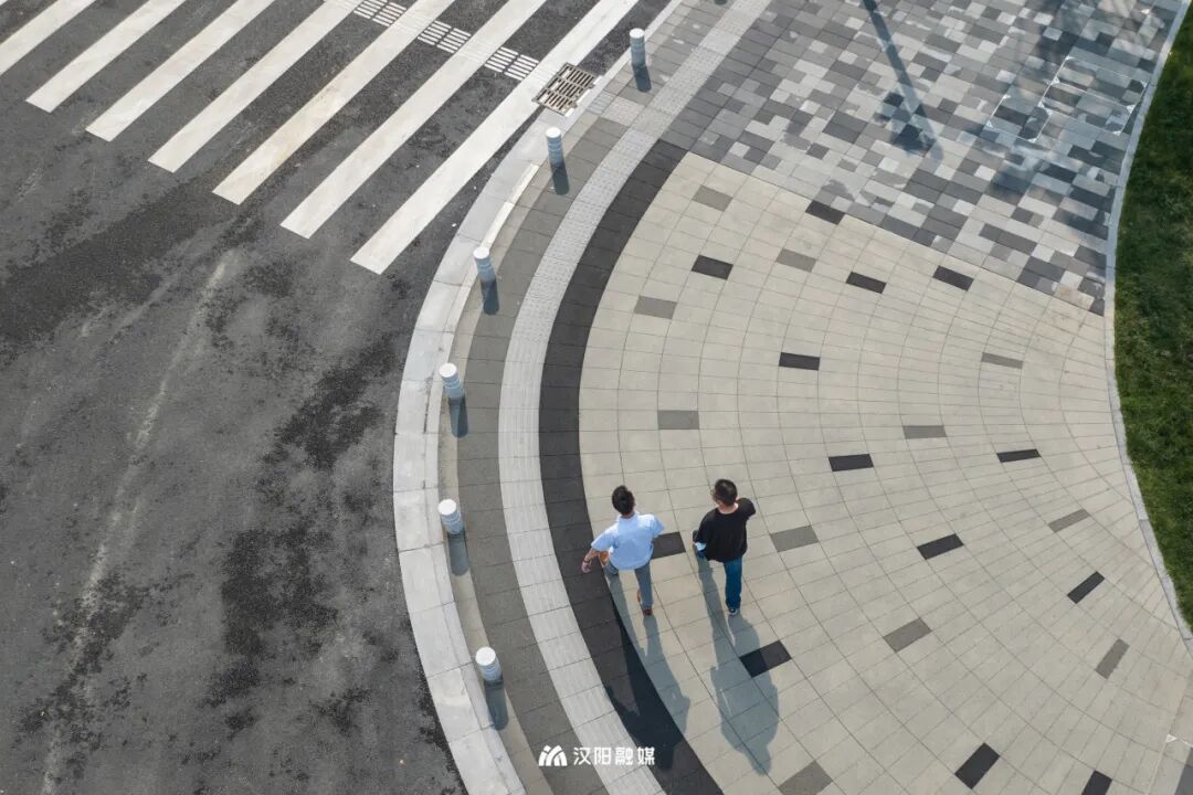 △新五里后堤(洲头南路-锦绣路),精雕每一处细节,灰白拼花配色的弧形路口,采用了透水砂基整体现浇工艺。