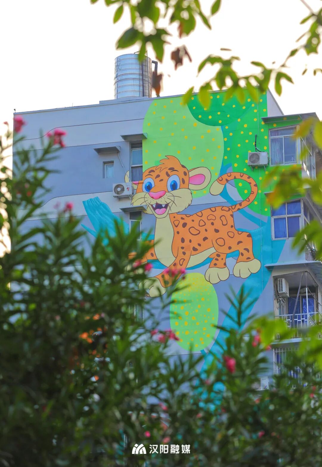 憨态可掬的大熊猫、粉嘟嘟的火烈鸟、正在用鼻子喷水的大象……这里是武汉动物园?不,是园区门前的动物园路。今年9月,沿此路的住宅楼外立面及小区围墙上,5800平方米动物主题彩绘亮相,氛围感满满。