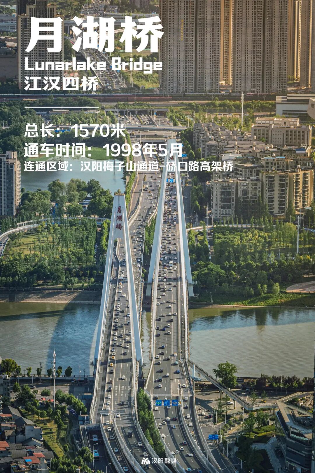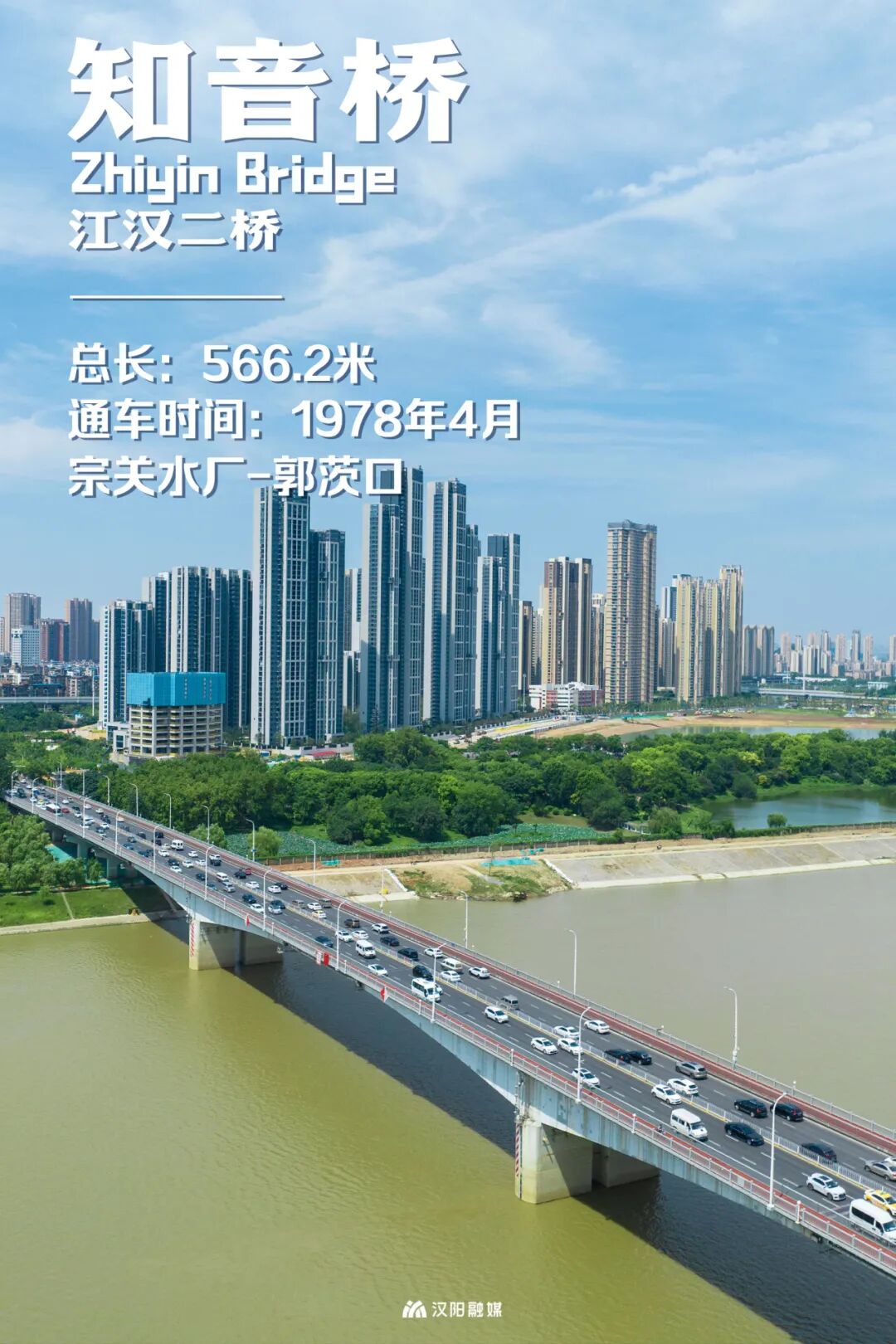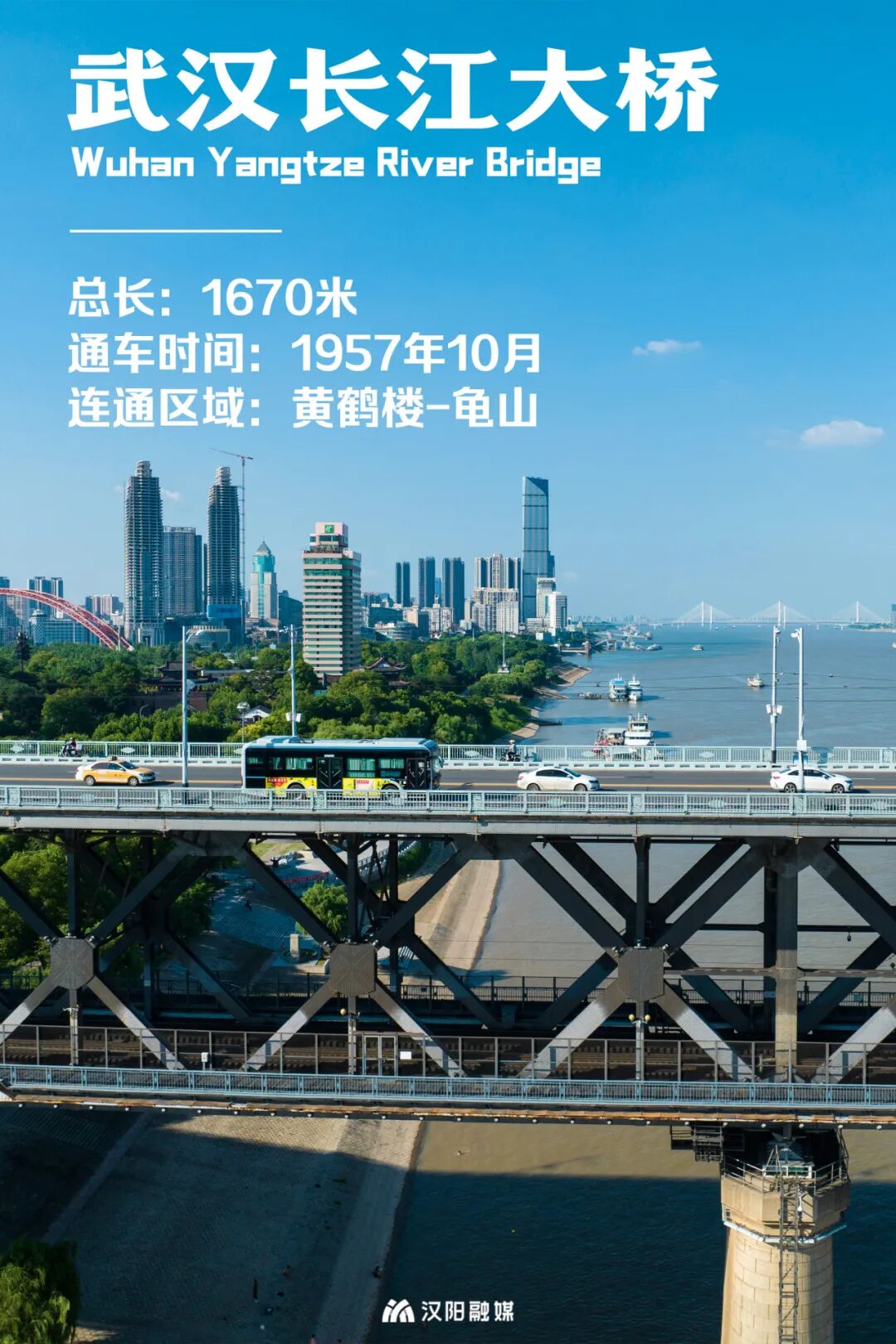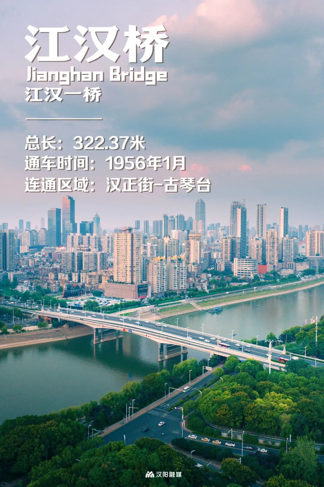 全长322.37米的江汉一桥,是汉江上修建的第一座大型桥梁;总投资80亿元的鹦鹉洲长江大桥,是世界首座主缆连续的三塔四跨悬索桥。