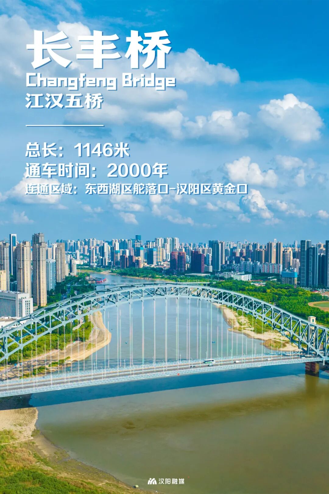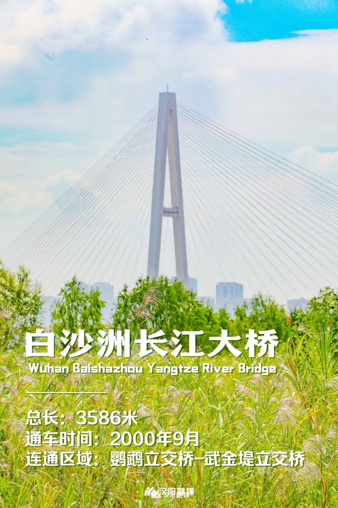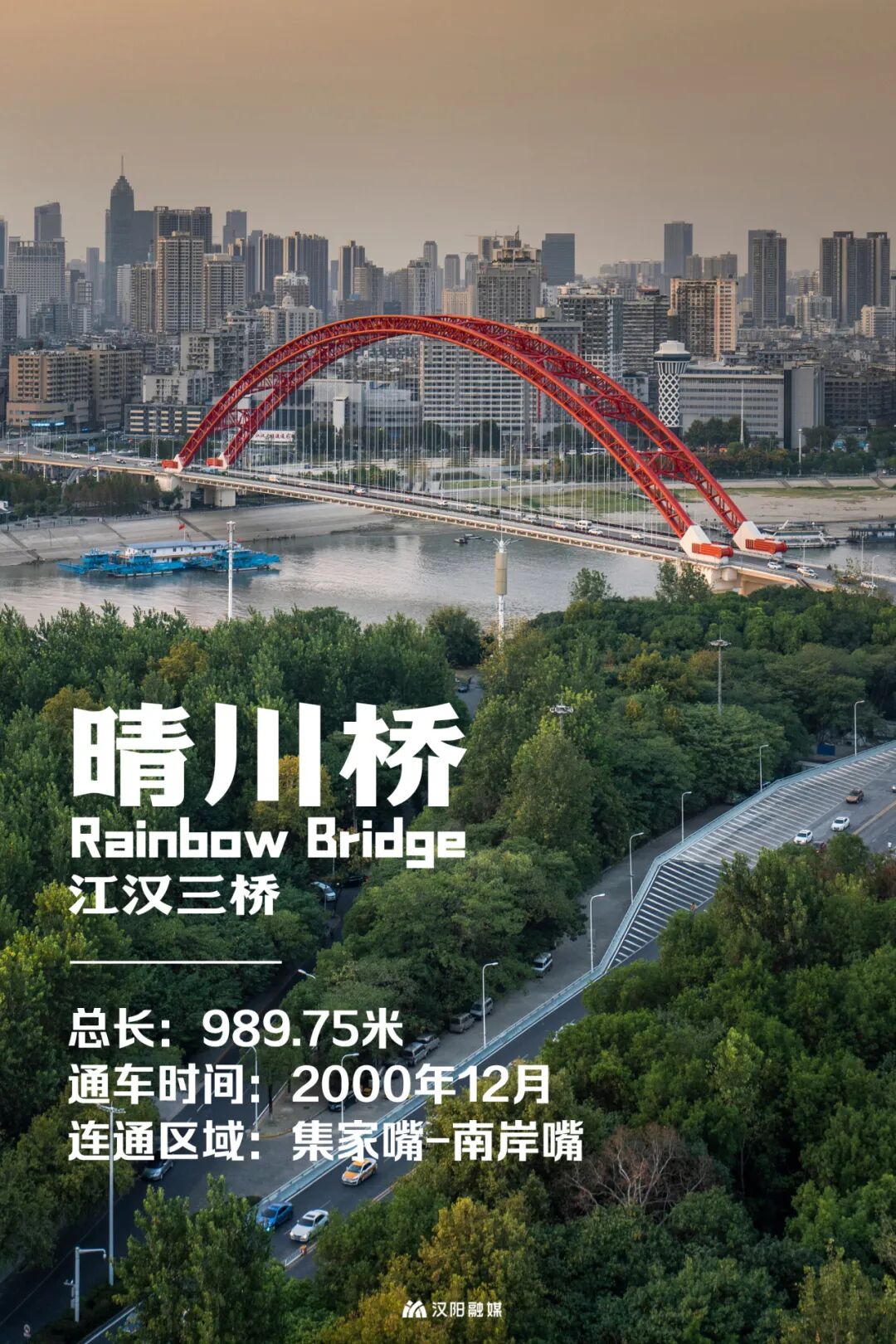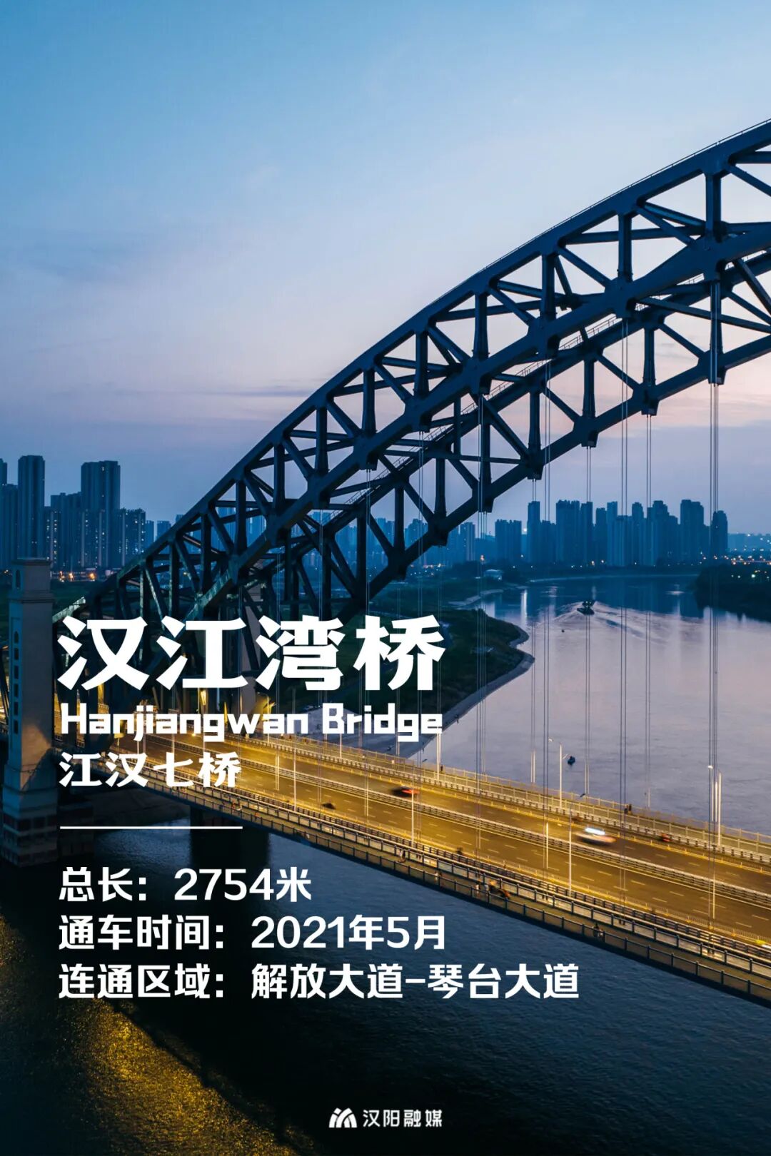 全长322.37米的江汉一桥,是汉江上修建的第一座大型桥梁;总投资80亿元的鹦鹉洲长江大桥,是世界首座主缆连续的三塔四跨悬索桥。