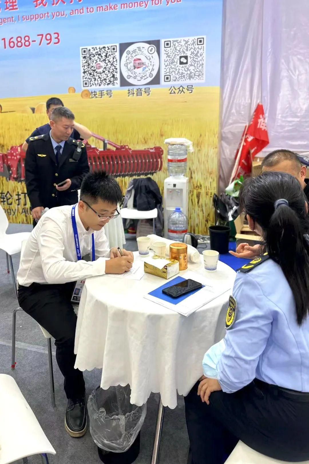 △洲头市场监管所,现场调查农机展专利侵权举报线索。