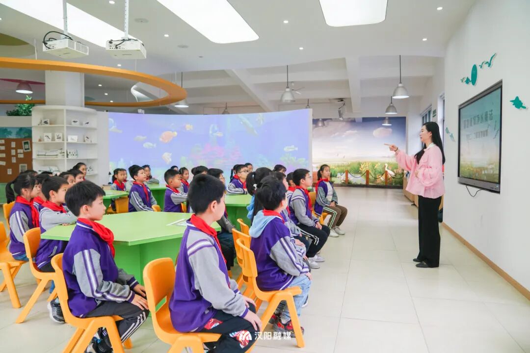 西大英才小学位于汉阳六湖连通交汇地带,东眺长江,西望三角湖,南靠太子湖,北邻凤凰湖,学校聚焦核心素养,弘扬生态文明,因地制宜建设了湿地生态体验馆。