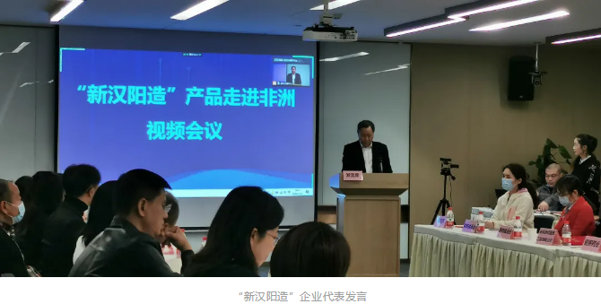 本次活动采取视频会议方式举办。活动现场,中铁大桥局集团有限公司、武汉金牛经济发展有限公司、武汉金瑞达医疗用品有限公司等“新汉阳造”企业代表进行在线推介,向非洲客商集中展示了“新汉阳造”品牌的风采。