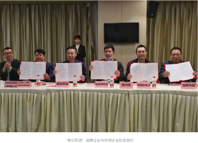 活动上,武汉健民药业集团、武汉西高电器有限公司、武汉阿迪克电子股份有限公司、武汉孚安特科技有限公司及湖北未来世纪建筑工程有限公司等5家企业与非洲企业在线签约。根据协议,“新汉阳造”产品将通过这些平台进入非洲市场,为武汉企业发展拓展海外市场,巩固国内、国际双循环新格局。