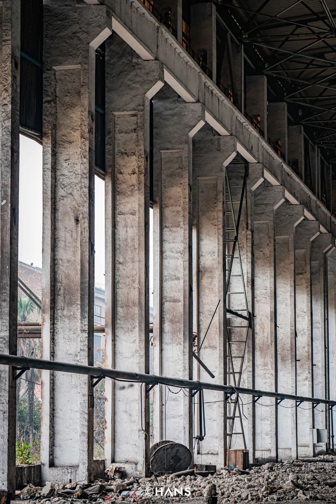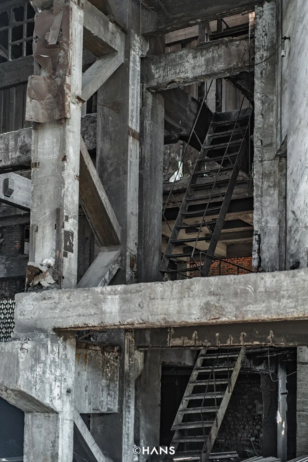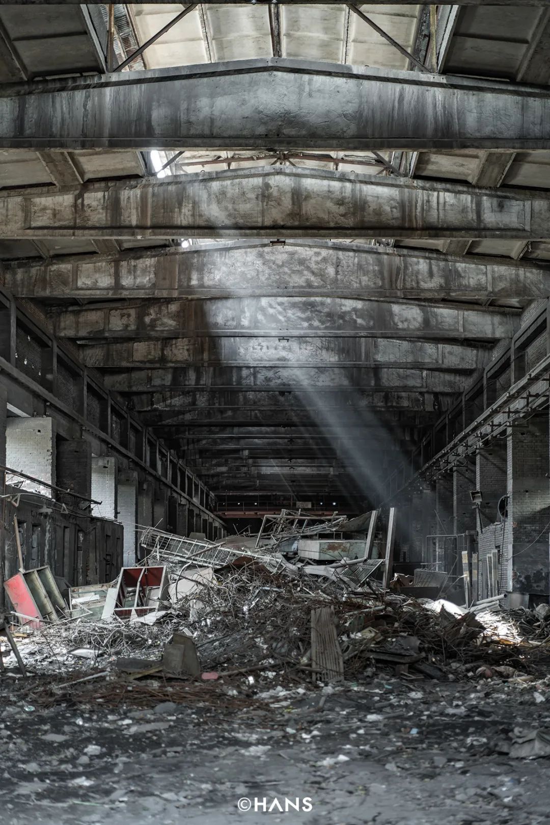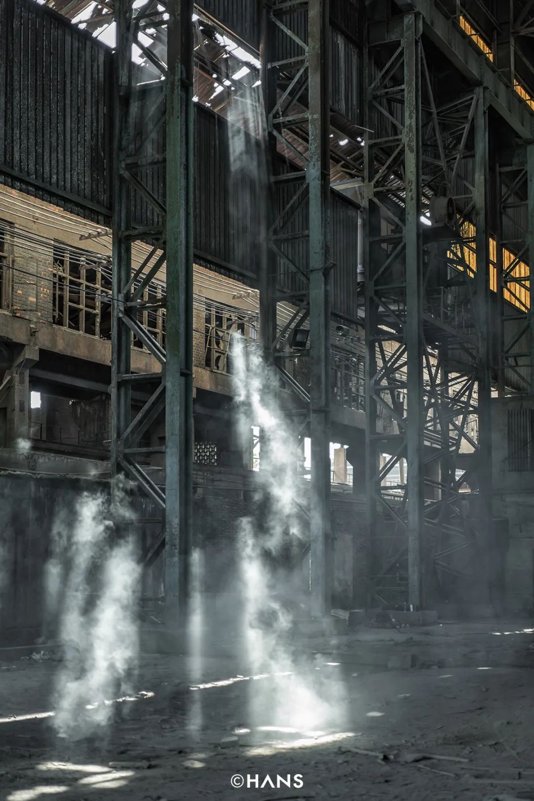 剥落的砖墙、高耸的吊塔,从天窗处漏下的阳光,装点着钢铁丛林的昔日的威严。