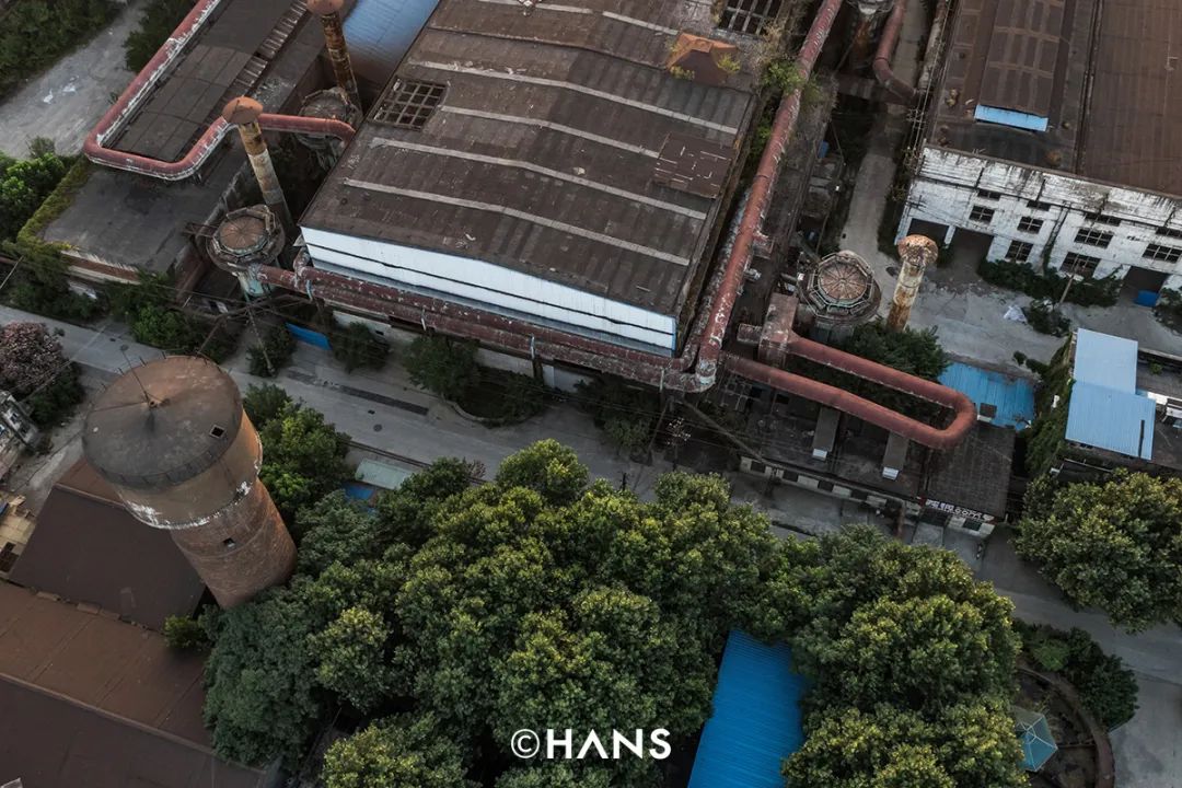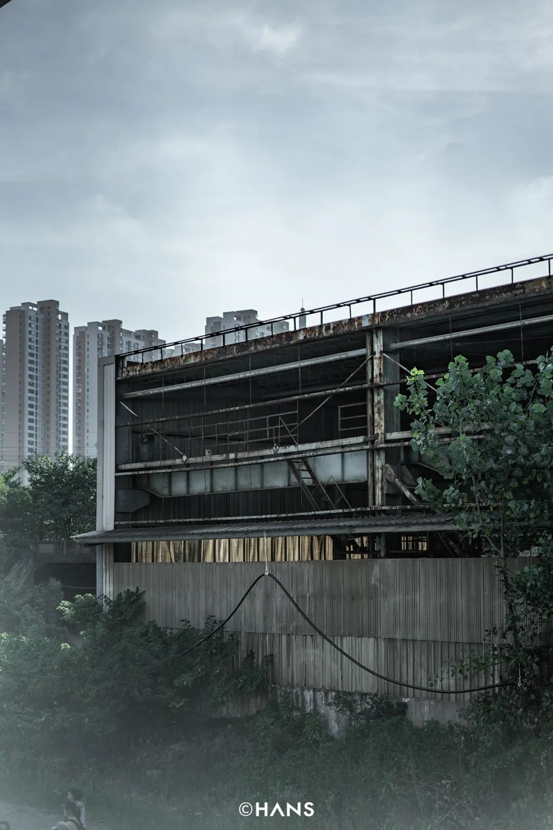 昔日的工业浪潮褪去,厂里的烟囱依旧高耸入云,却爬满了藤蔓。