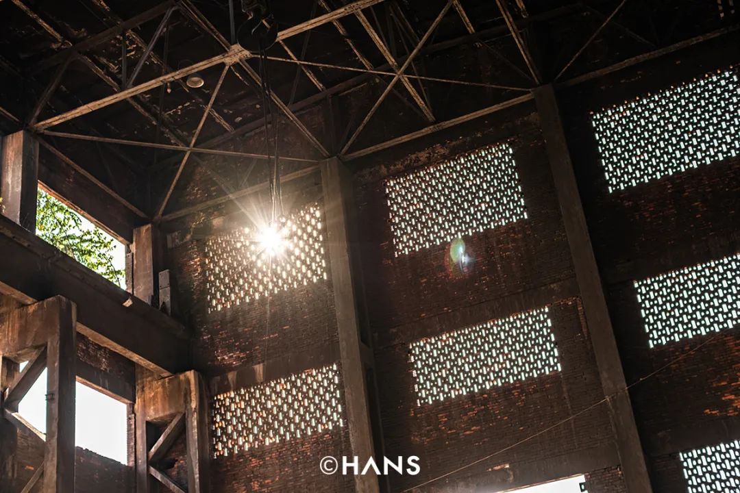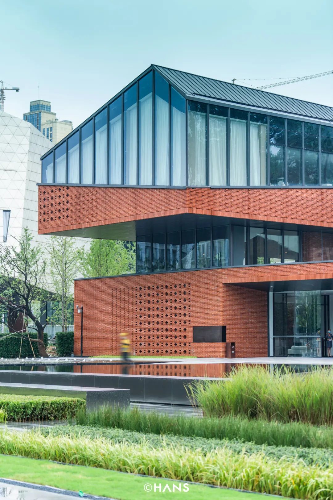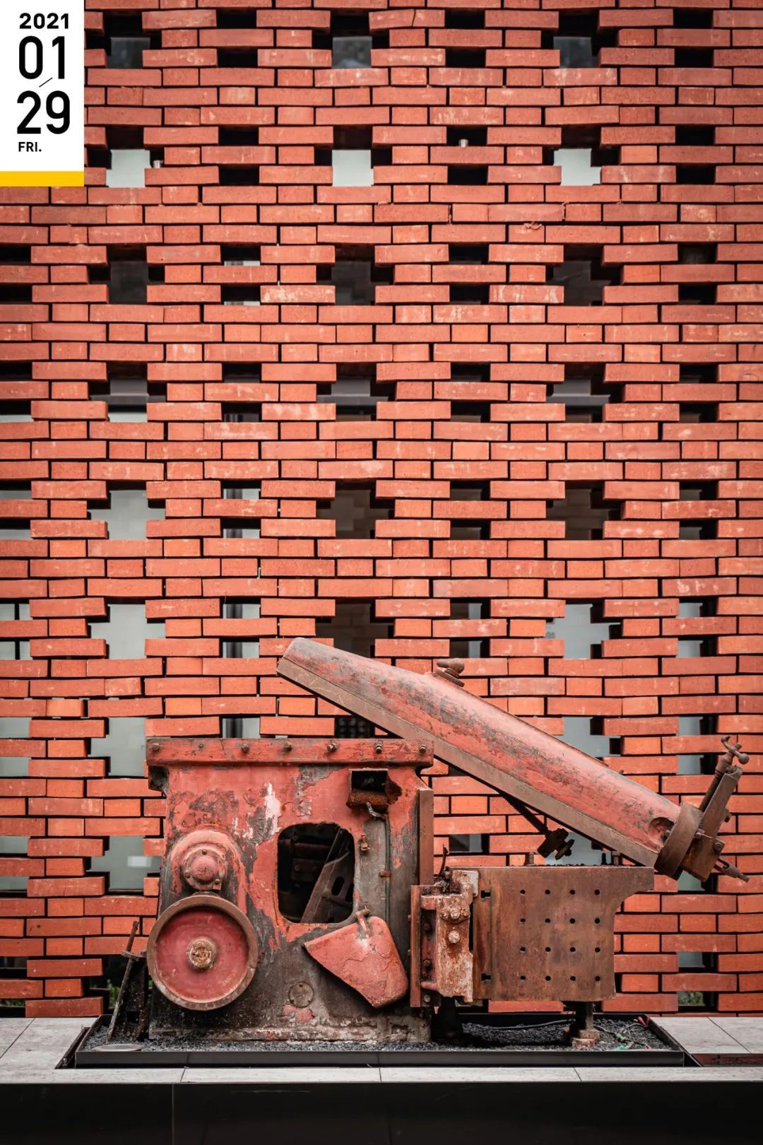 现在来这里,能看到一座古朴精巧的红砖建筑,是由老制氧车间翻修的艺术馆。约10万块镂空的红色陶砖,像乐高积木一样重新排序,配合异形LOW-E玻璃,颜值超高,迅速成为武汉年轻人打卡拍照的新地标。