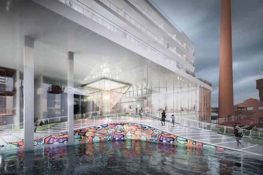 改造后的棒材厂,办公、逛街两不误,还能时不时在剧场看秀。(效果图)