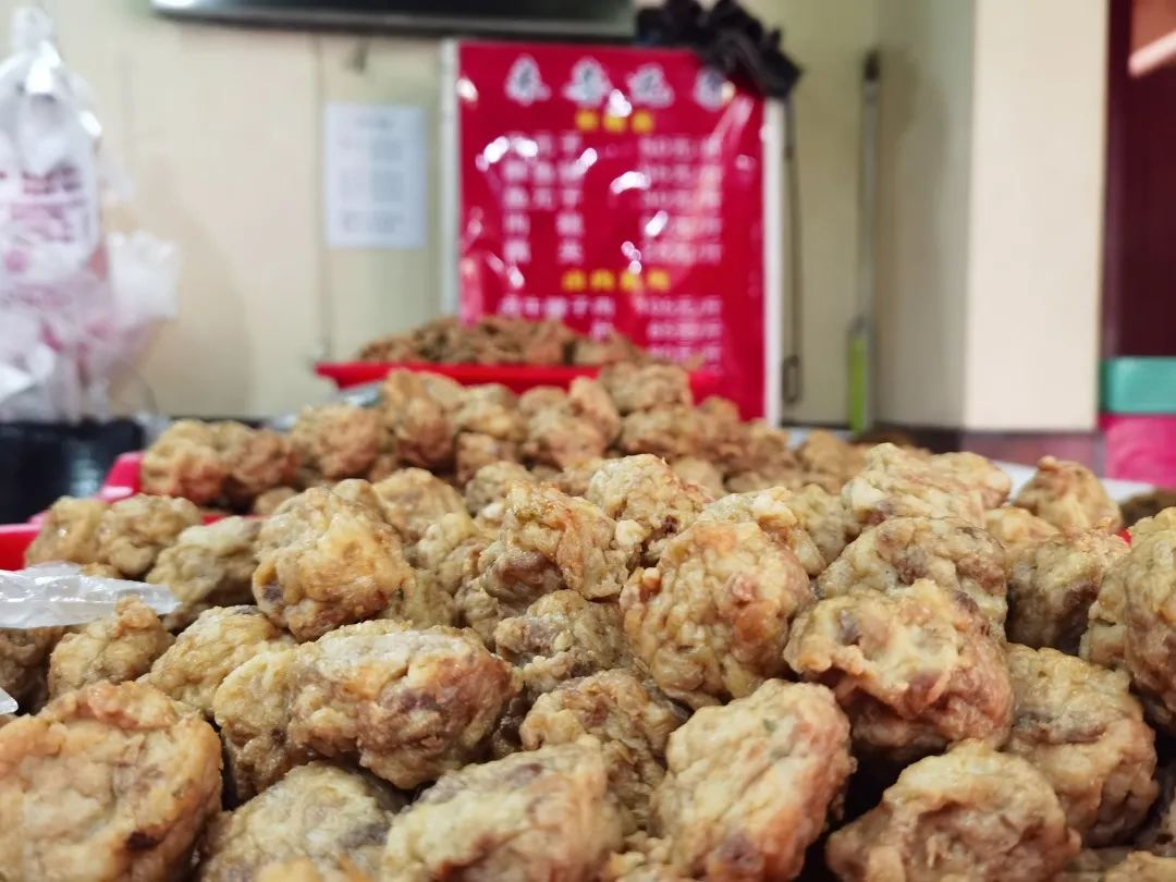 一口烧得翻滚的油锅,剁得细烂的肉泥,一个个“丸球”在油锅中起起浮浮,散发出诱人的香味......