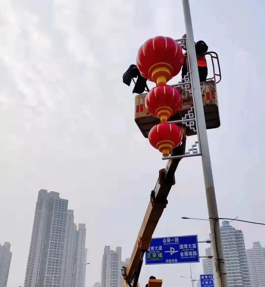 汉阳君从区城管局获悉,为营造节日氛围,该局在鹦鹉大道、龙阳大道、汉阳大道、江城大道、国博周边等7条主干道及长江大桥、鹦鹉洲大桥、月湖桥等8座桥梁路灯上悬挂灯笼2000余套,中国结、美丽中国100余套。