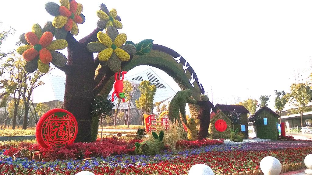 “家人代表和谐家庭,大树象征植物,兔子猴子为动物代言,彩虹传达的是美好祝福,此处扎景描绘的是一家人在花田中游玩的美好画面,特别选用了红色山茶花、杜鹃花和火焰兰天竹等象征红火的花卉。”区园林局绿化大队相关负责人表示,为迎接新春佳节的到来,该大队还将根据区内统一安排,在汉阳城区主要节点进行鲜花景观布置,为广大市民朋友营造了喜庆、祥和、热闹的春节氛围。