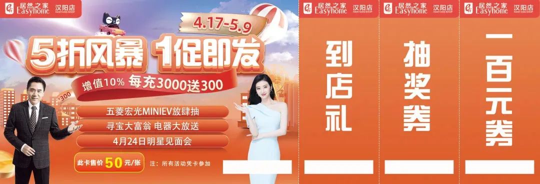 居然之家汉阳店将于4月17日至5月9日之间举行“5折风暴1促即发”大型促销活动