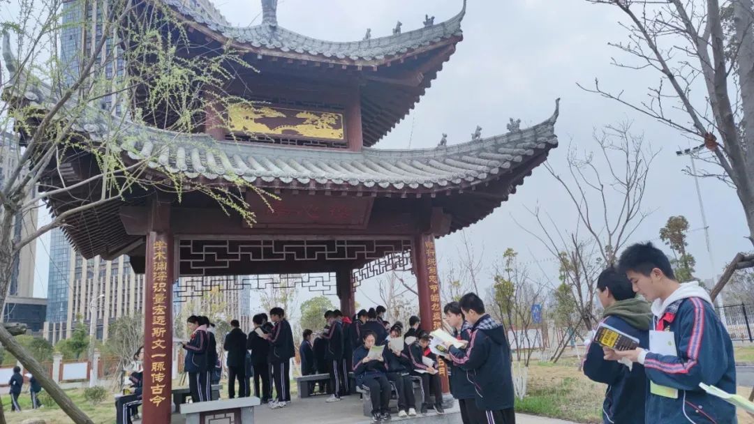 武汉三中学生在葆心亭晨读