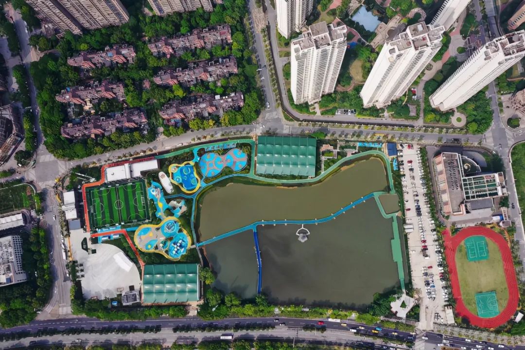 走进公园,各种极富现代造型美感的运动场馆让人赏心悦目,公园内各种健身器材为居民提供了多样化的选择。最让人眼前一亮的是,公园里设置了一片垂钓区,还有各种水上娱乐健身项目,让居住在钢筋水泥“森林”中的人们倍感惊喜。虽然还未开放,但已有市民前来现场打卡留念。