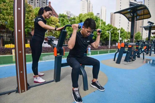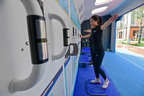 市民在体验智能化健身设施,通过语音播报和数码屏实时掌握自己的运动强度与状态