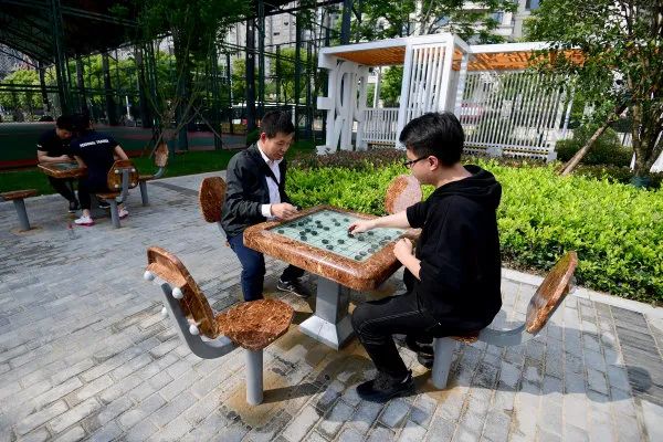 公园内安装的磁吸象棋,可供市民休闲娱乐