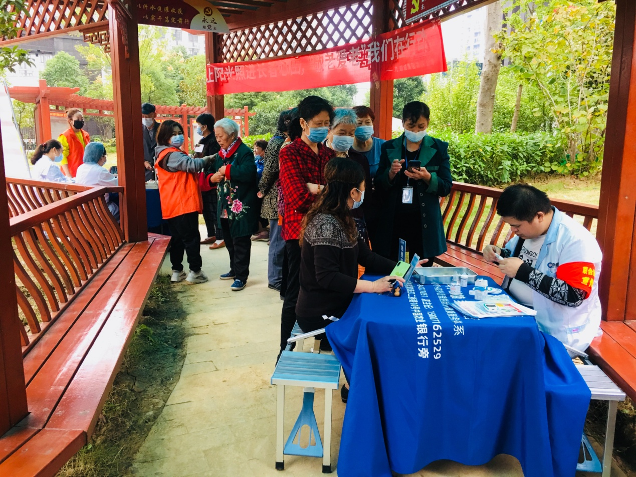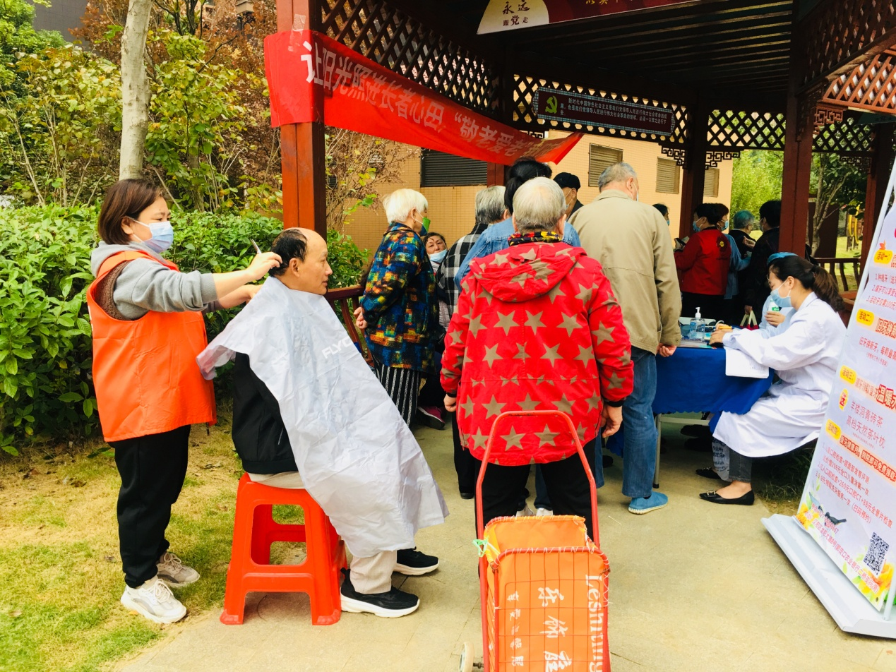 在小区广场,社区医生志愿者为老年人免费测量血糖、血压,为老年朋友提供医疗咨询和康养建议。除义诊服务和免费理发外,爱心企业中百仓储(万科翡翠滨江店)与社区十五名困难老人开展结对帮扶,为困难老人送上节日慰问物资。在万科翡翠滨江活动现场,社区还邀请本季度过生日的老人参加集体生日会。
