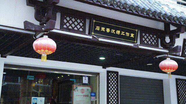 环顾四周装饰古朴简约,墙面上、展架上、多宝阁内镶嵌着大小不一,内容各异的汉绣作品,置身其间,仿佛能够穿透百余年的历史烟尘,窥见汉绣最初的样子。
