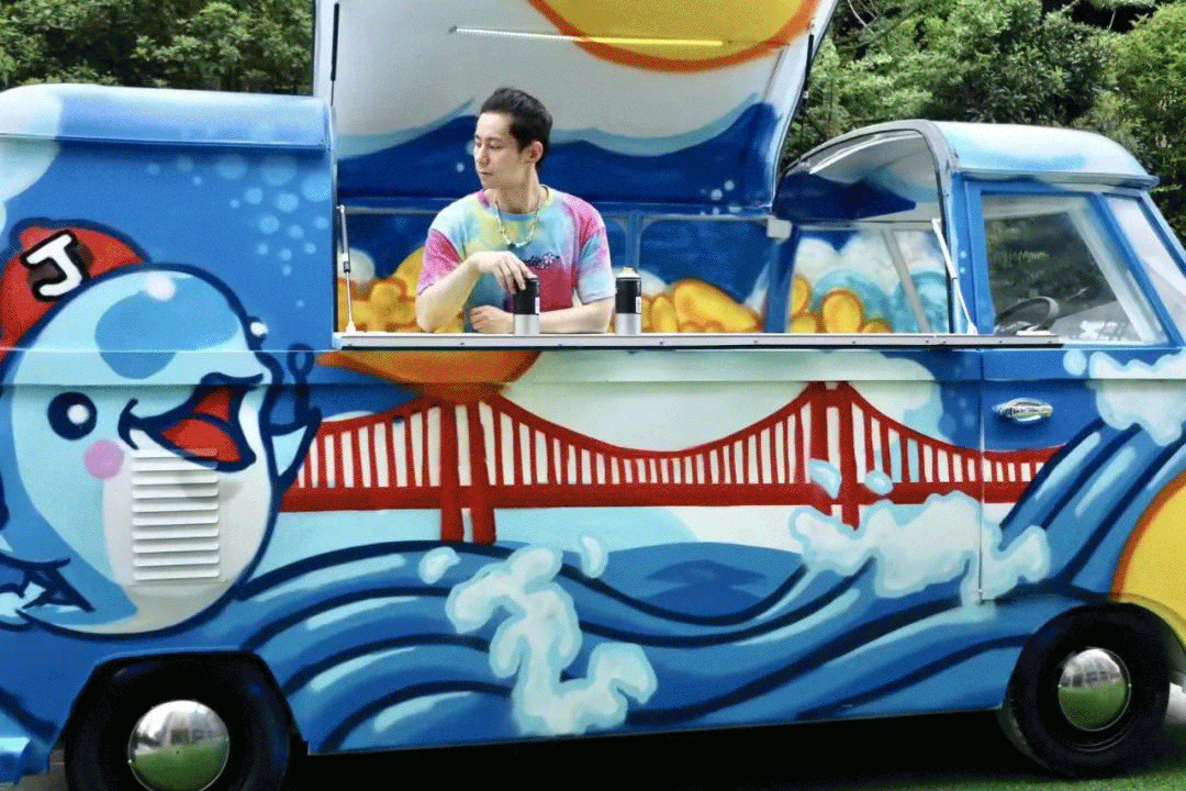 涂鸦艺术家方特希惊喜现身,亮眼吸睛的手绘涂鸦巴士,艺术感十足!