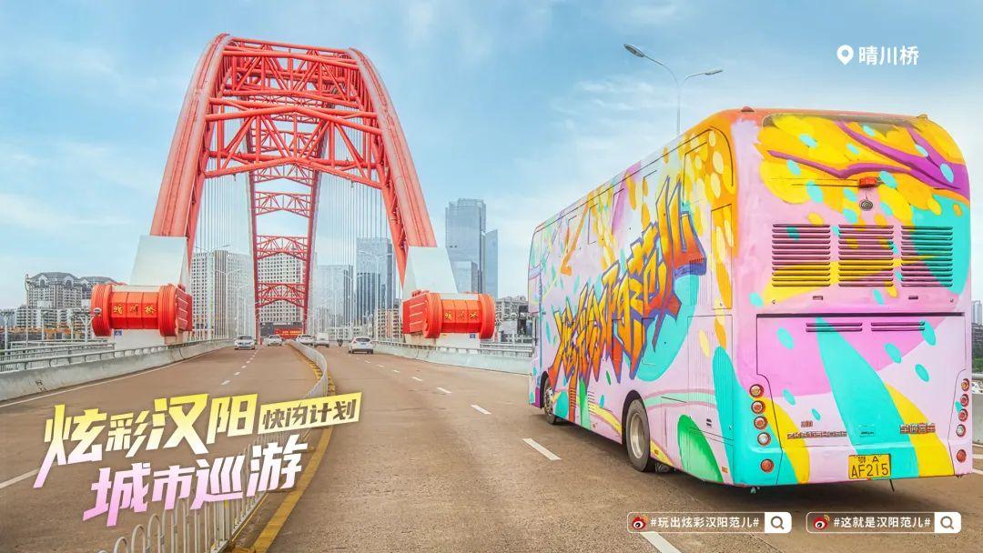 由涂鸦艺术家方特希倾情打造的汉阳定制版炫彩巴士超燃出街,一路巡游武汉国际博览中心、武汉琴台大剧院、晴川桥等城市地标,串联武汉摩尔城、万科未来中心VFC、江腾广场三大商圈。