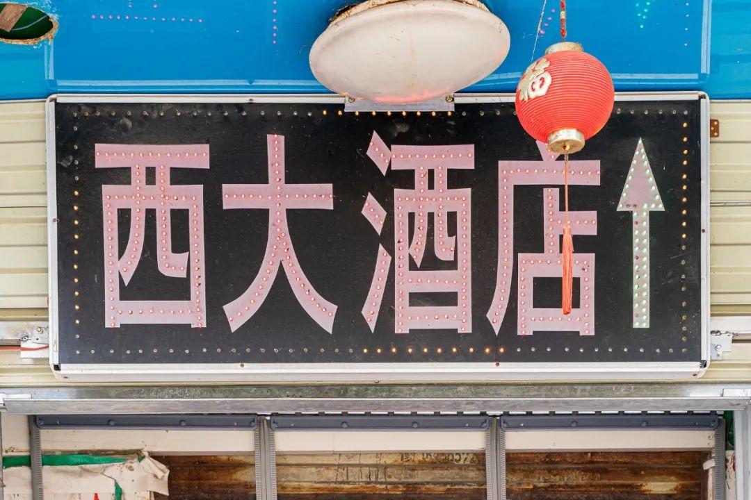 别看名字气派,其实不显山露水的低调劲儿,走到跟前才看到一个小小的霓虹招牌,再沿着楼梯走到二楼,才算揭开西大酒店的真面目。
