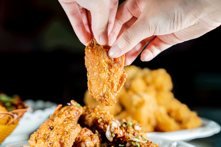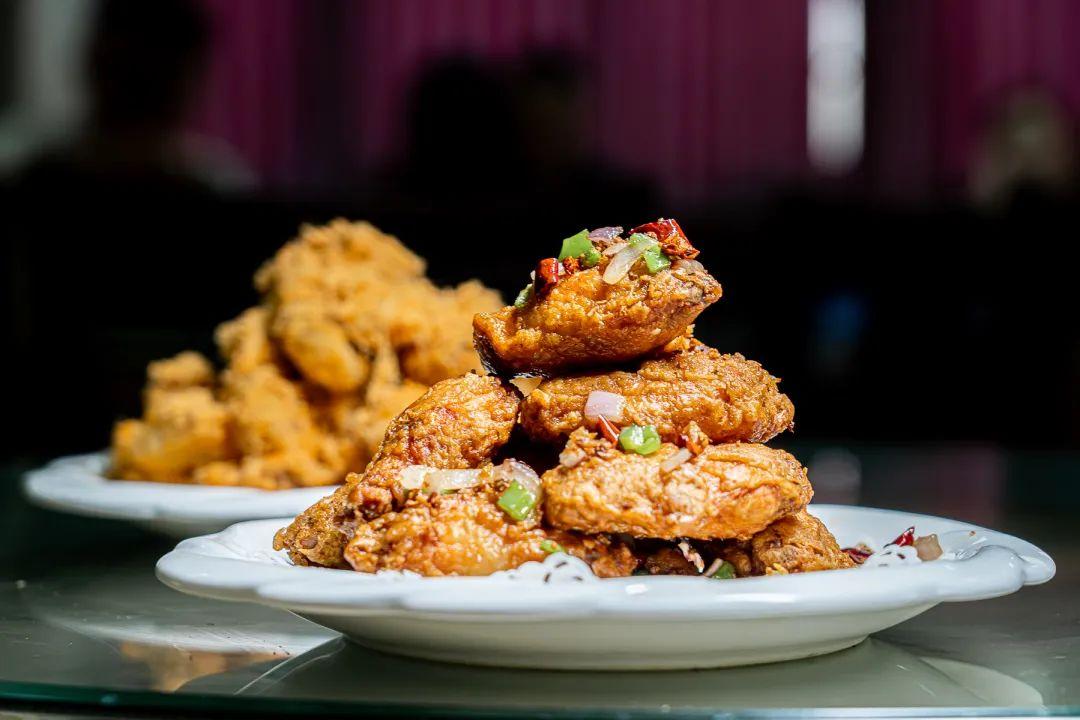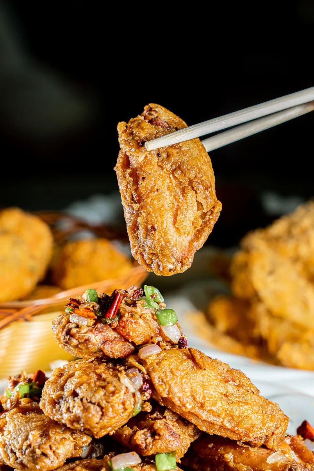 现炸出锅的蒜香鸡翅,掰开的时候,里面还冒着热乎气。一嘴下去,肉烂脱骨,外酥里嫩,口感口味不用多说。