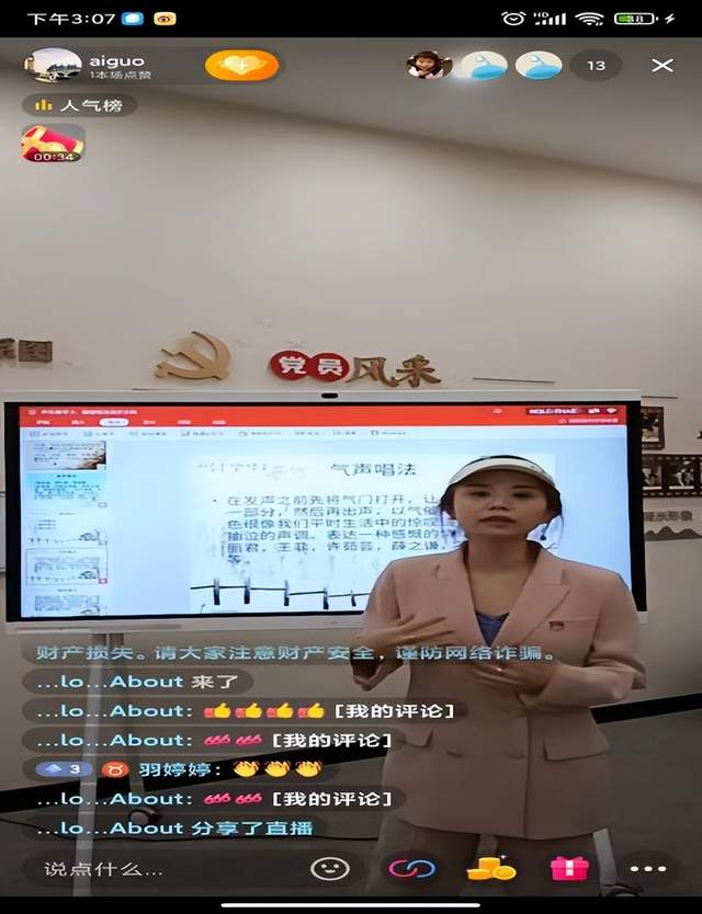 线上授课形式新颖,社区直播间热闹非常。黄曼霞从专业角度细致讲解戏曲开嗓和唱法,示范的同时不忘与观众互动。“黄老师人美歌甜,课也讲的好。”不少居民在直播间留言说。