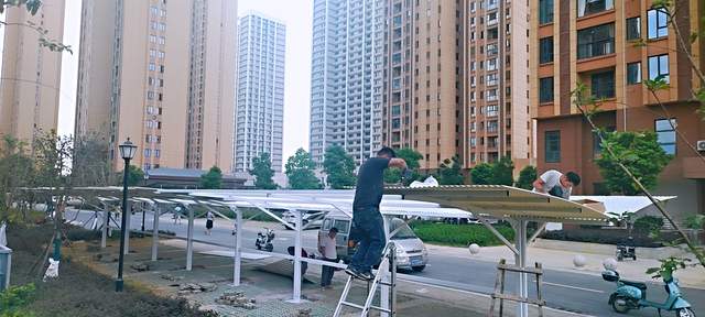 汉阳区翠堤锦江小区内新建的电动车充电车棚