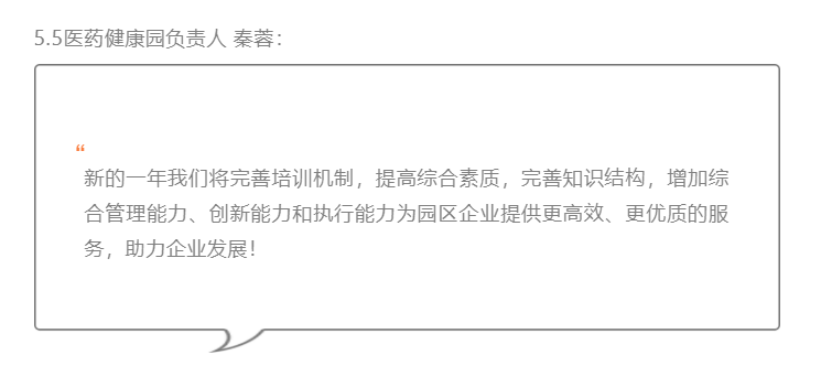 5.5医药健康产业园负责人秦蓉告诉我们,2022年,将为入驻企业提供政策、管理、法律、财务、融资和市场推广等方面多渠道的支持,降低企业创业风险和成本,尤其是对处于成长期的创新企业,园区将投入更多资源进行孵化,助力企业走稳、走好,推进企业高质量发展。