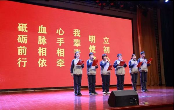 ▲“同宣一次誓言”新团员入团仪式持续开展“跟党走,做新时代的好学生”红色主题教育活动,实施青少年马克思主义接力工程。2019年11月至12月,汉阳区教育局团委在全区中学生团员和入团积极分子中广泛开展“同游一座城,同上一节团课,同宣一次誓言”活动,广大青年团员“立初心,明使命”,接受了一次深刻的爱国主义和理想信念教育。《人民教育》第11期以《武汉汉阳:以“互联网+红色德育”铸魂育人》为题,2019年2月27日《中国教育报》以《武汉汉阳:“红色引擎”助德育提质升级》为题全面报道我区开展红色德育、立德树人经验。