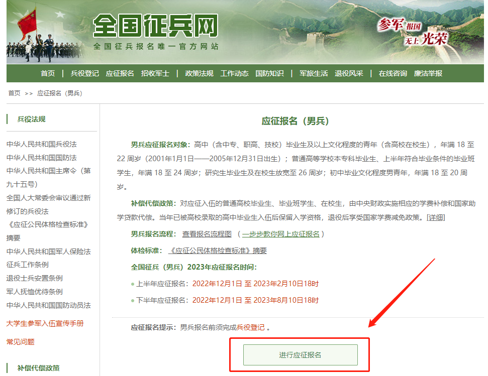 上半年应征报名:2023年1月1日至2023年2月10日18时