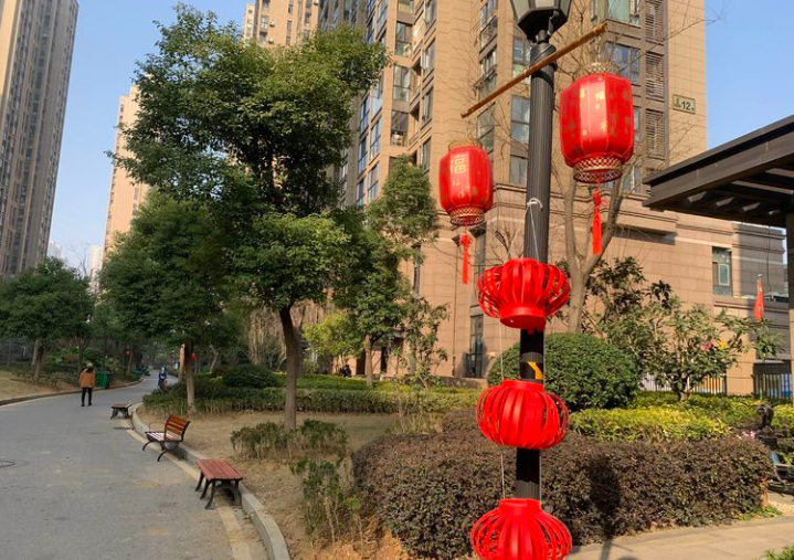 “挂灯笼,过年啦!”汉阳区星火社区十里新城小区内一串串居民自发挂起的火红色灯笼,随风摆动,引得过往居民驻足观赏。