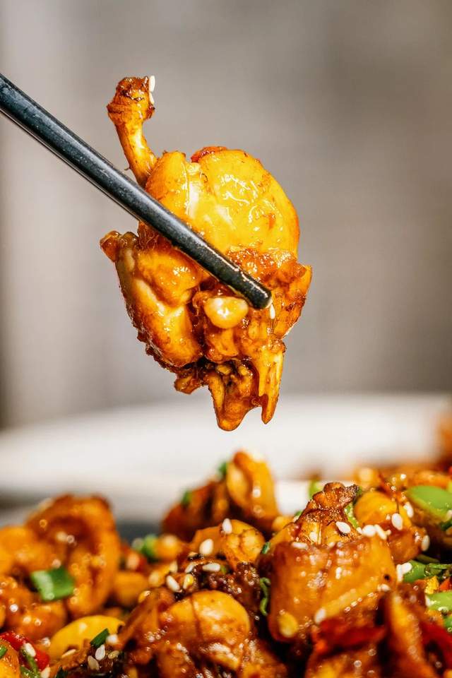 看到这些血红的辣椒和姜片,就知道这道「姜辣凤爪」湘味十足。生姜的加入可谓是画龙点睛,让鸡爪除了辣还带点麻,越啃越有味儿!