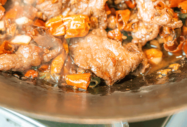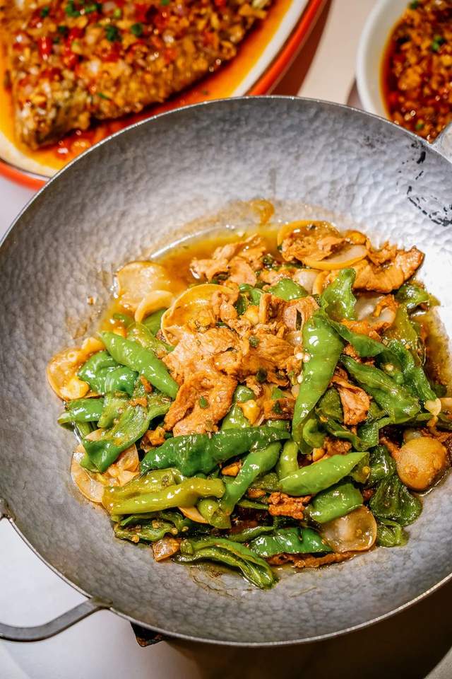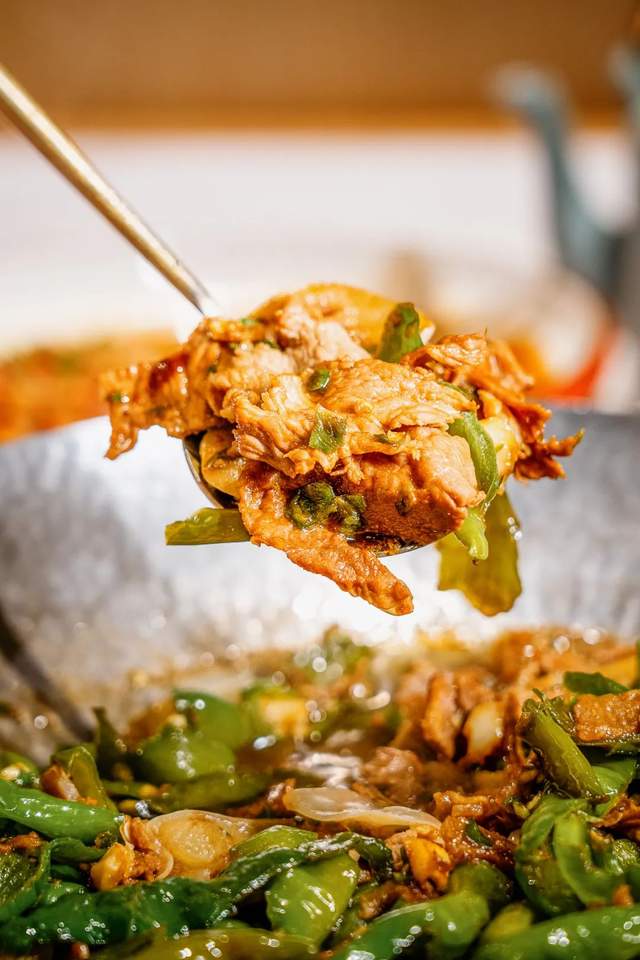 高温之下的瘦肉片是越炒越香,青椒的汁混进肉里,热辣劲爆的滋味,像是在舌尖跳舞。