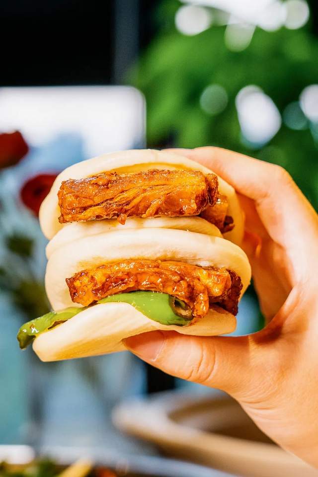 青椒解了腻,包在切好的馒头里,奶香十足的中式小汉堡完成,开拓湘菜新吃法,大口满足~