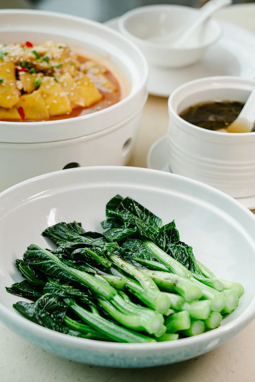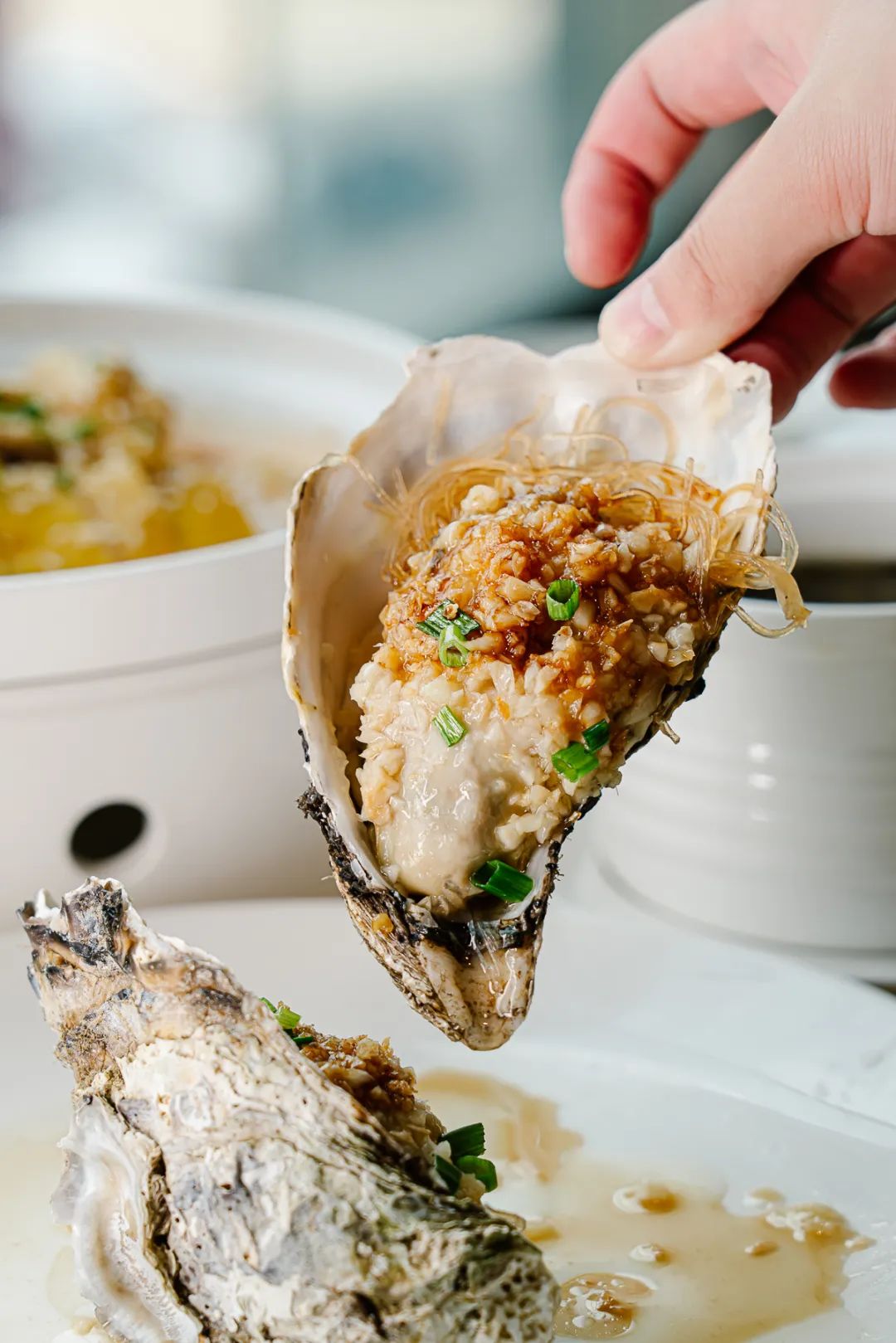 一同上桌的生蚝硕大饱满,广东菜心脆嫩爽口,港式口水鸡也独具新意。