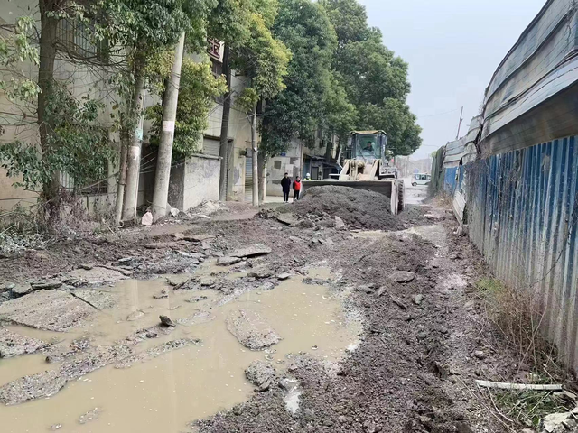 2月3日,道路修复工作正式动工。沿线企业争相上阵,认领相关工作:有的出铲车、有的出路面转机、有的出人负责维护现场秩序,不计回报,修路成了陈家咀工业园的“自家事”。