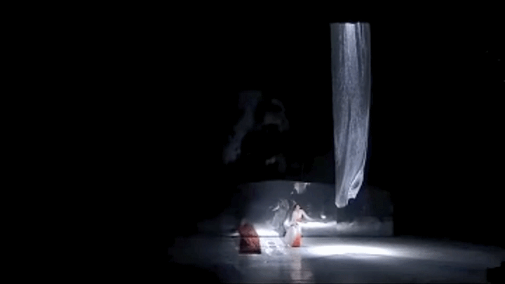 轻如云烟的白纱从舞台顶棚倾斜而下,落了足足1分钟才结束,落在甄宓身上,看似轻盈却似万斤之重,如同她的无奈命运。