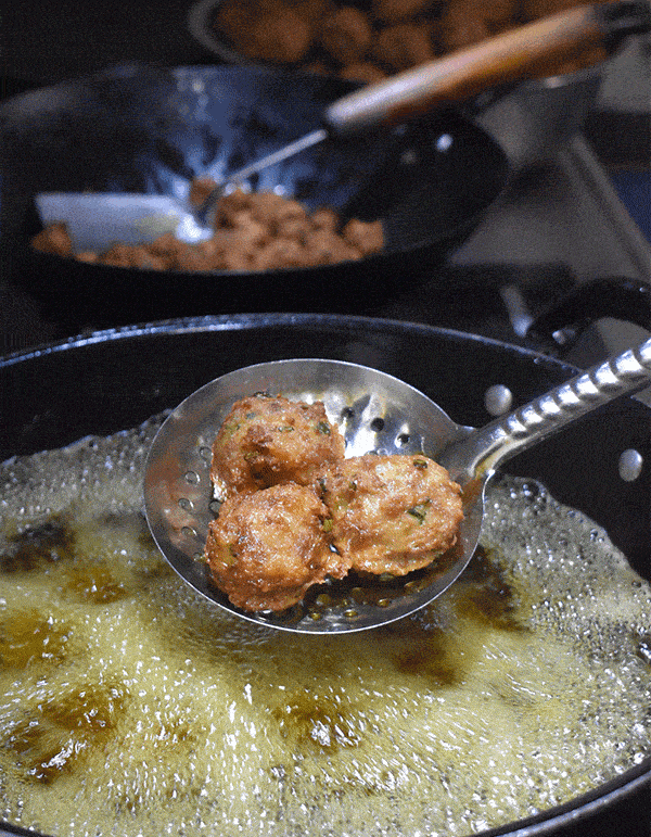 5位老师傅入行多年,厨艺炉火纯青,对这份从小吃到的圆子更是情有独钟,搅拌捏揉、热油烹炸之间付诸满满的诚意和匠心。