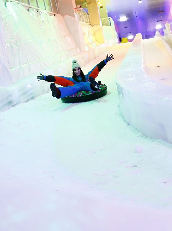 ▼ 武汉中心城区最大的室内滑雪场,也是遛娃天堂。夏天高峰时,一天有1000多人次来玩,又消暑又刺激。